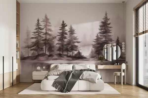 Fototapetes Teksturēts miglains mežs ar augstām priedēm, imitējot gleznu Nr. w09610v1