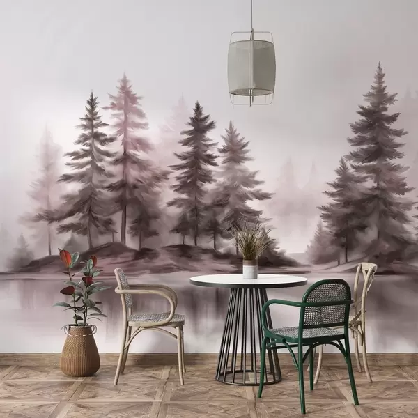Fototapetes Teksturēts miglains mežs ar augstām priedēm, imitējot gleznu Nr. w09610v1
