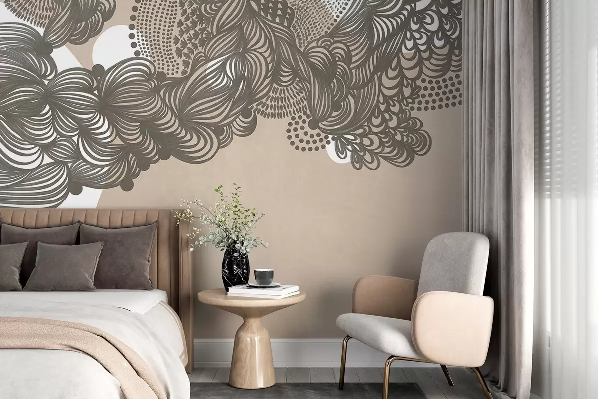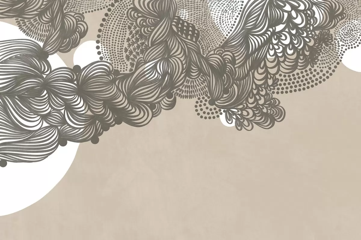 Fototapetes Abstrakts teksturēts dizains uz smilškrāsas fona, ar sarežģītu līniju darbu un punktveida tekstūrām. Nr. w09621