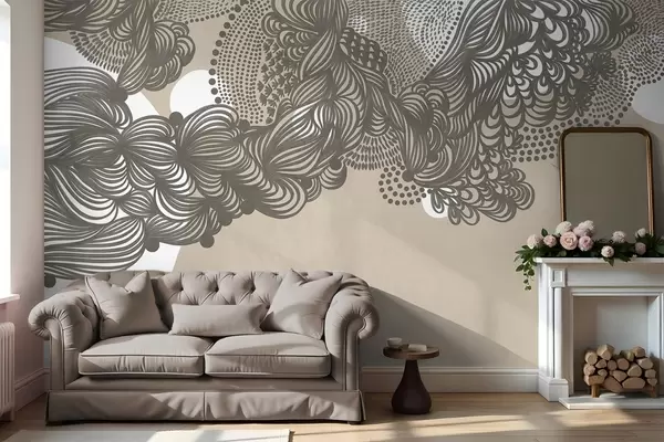 Fototapetes Abstrakts teksturēts dizains uz smilškrāsas fona, ar sarežģītu līniju darbu un punktveida tekstūrām. Nr. w09621