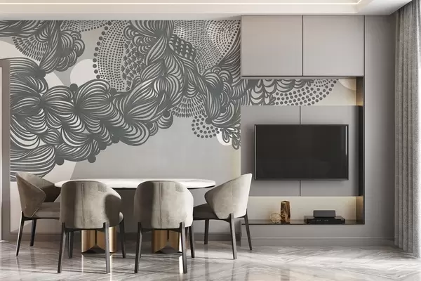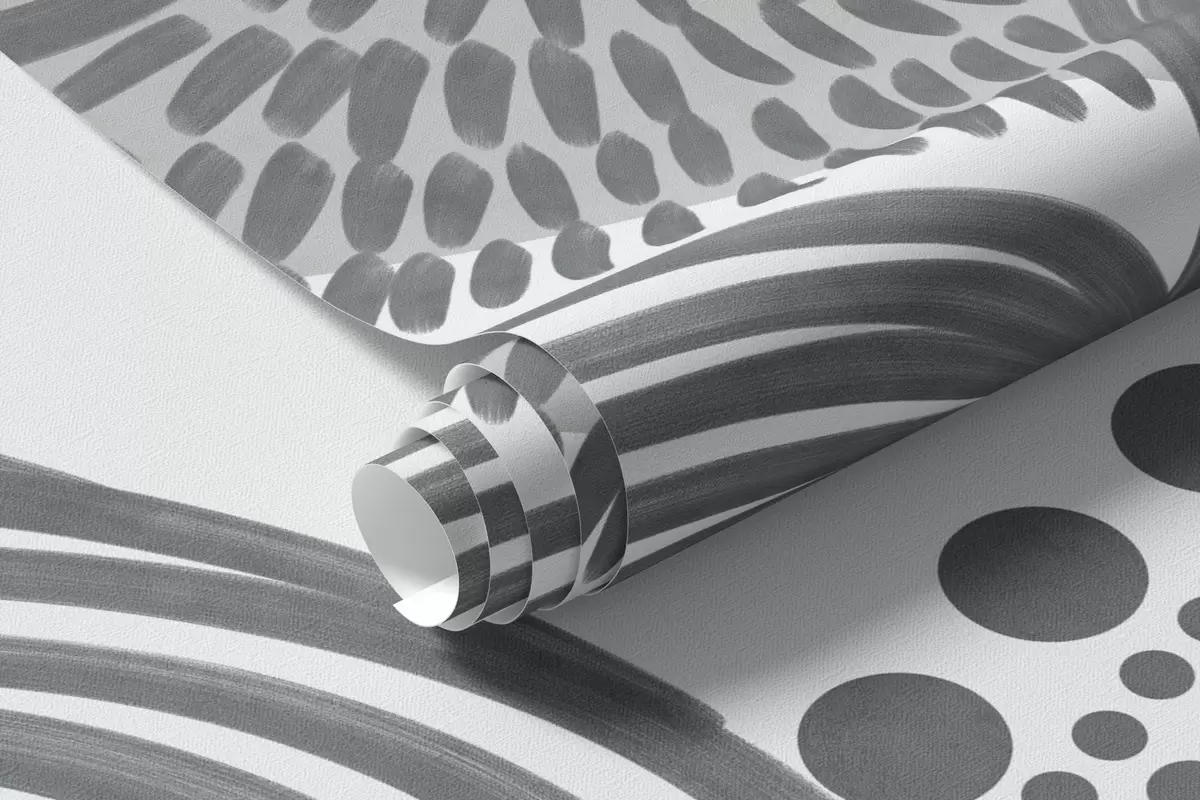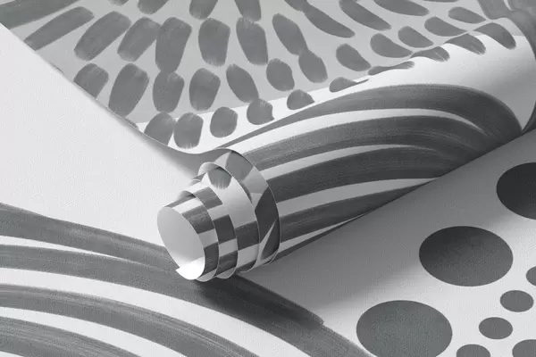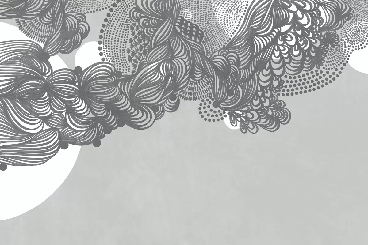 Fototapetes Abstrakts teksturēts dizains uz pelēka fona, ar sarežģītu līniju darbu un punktveida tekstūrām. Nr. w09621v1