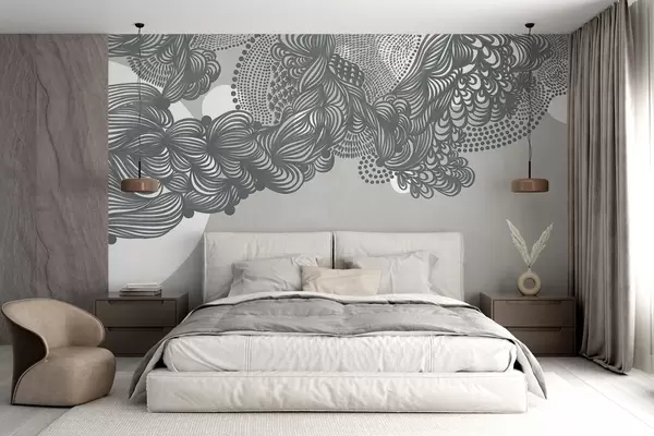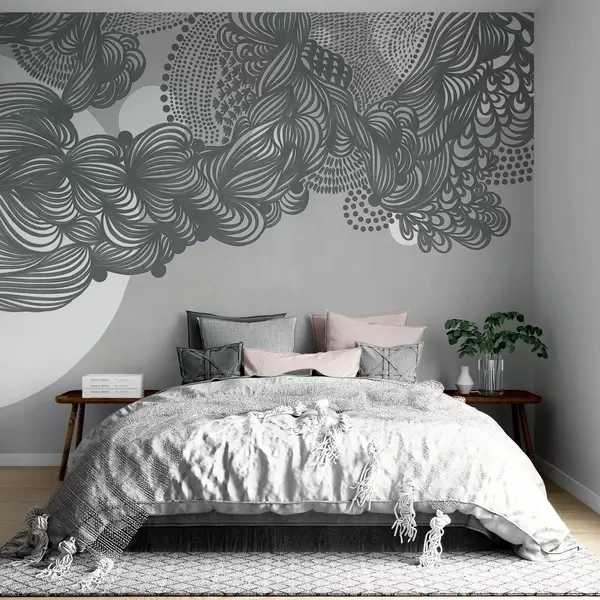 Fototapetes Abstrakts teksturēts dizains uz pelēka fona, ar sarežģītu līniju darbu un punktveida tekstūrām. Nr. w09621v1