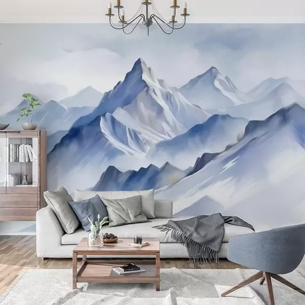 Fototapetes Teksturēti sniegotie kalni ar maigu akvareļa efektu un zilo un balto krāsu paleti Nr. w09630