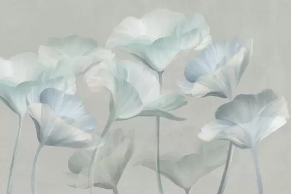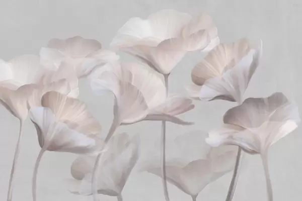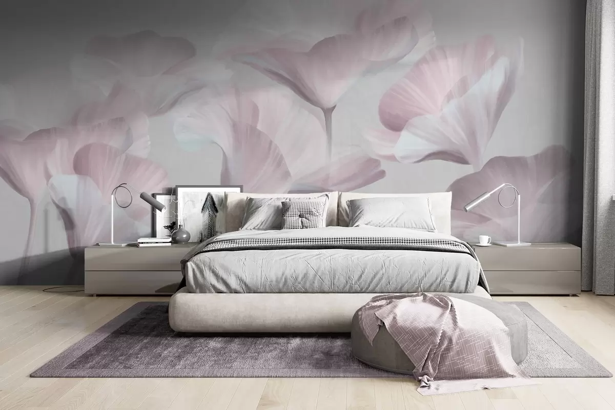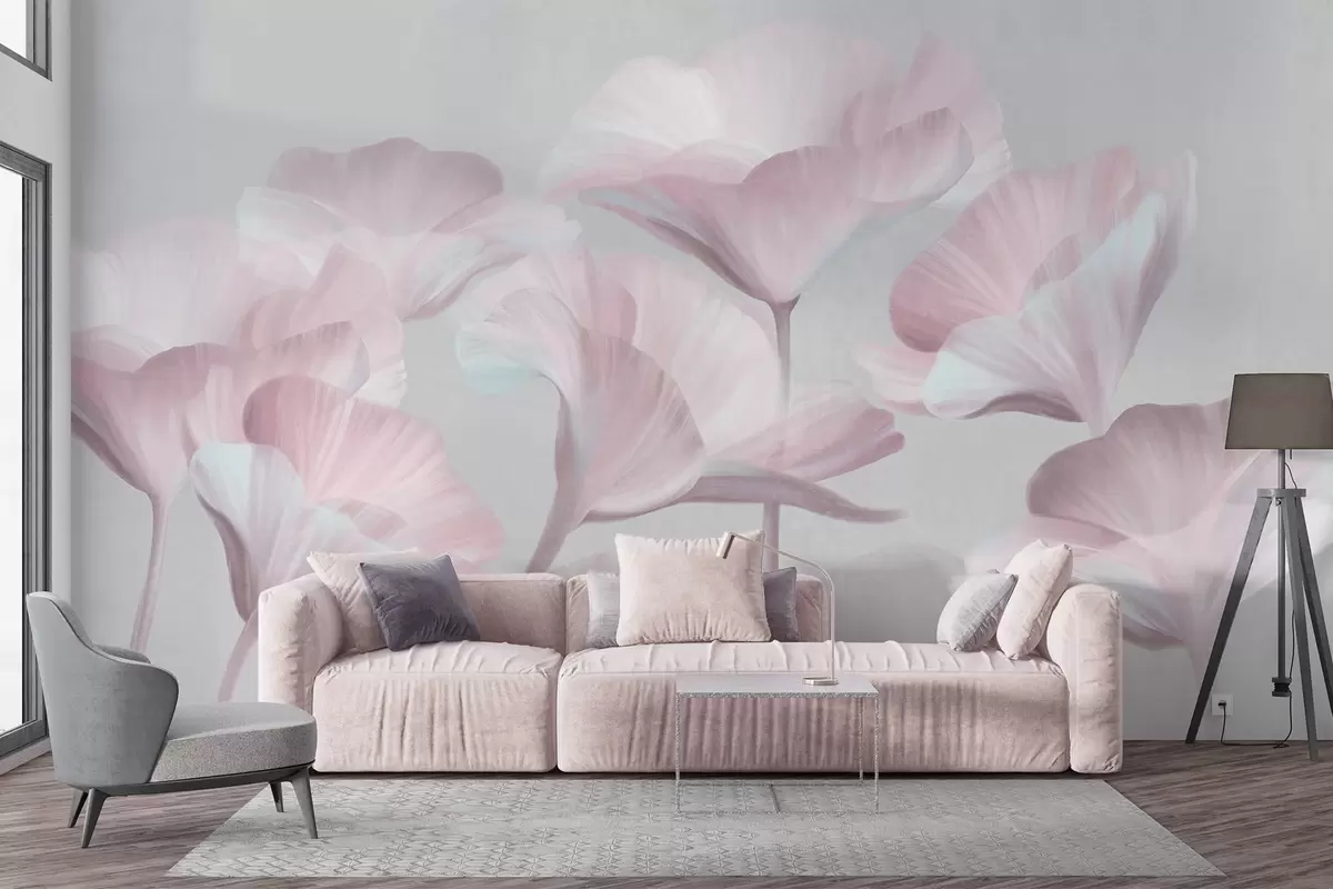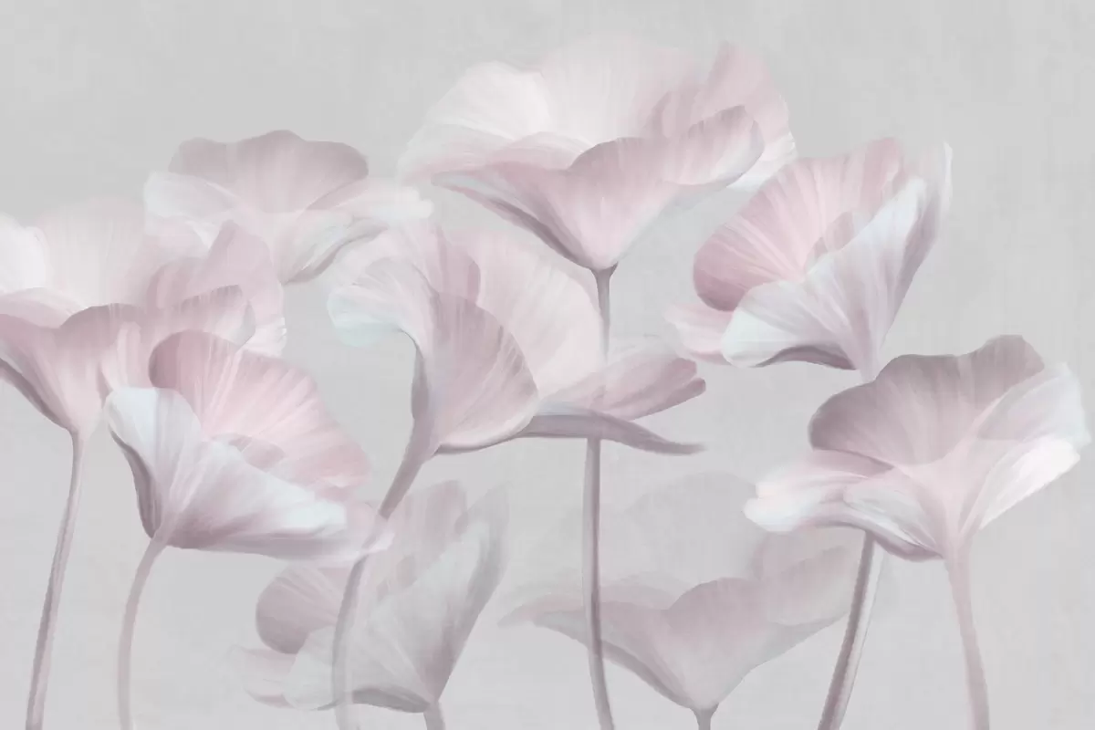 Fototapetes Bāli rozā teksturēti caurspīdīgi lotosa ziedi ar maigiem ziedlapiem uz klusā pelēkā fona Nr. w09640v1