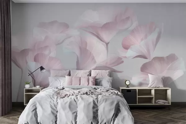 Fototapetes Bāli rozā teksturēti caurspīdīgi lotosa ziedi ar maigiem ziedlapiem uz klusā pelēkā fona Nr. w09640v1