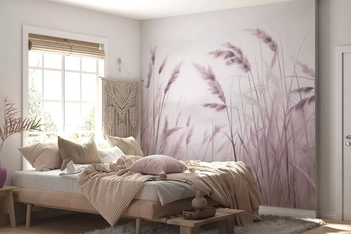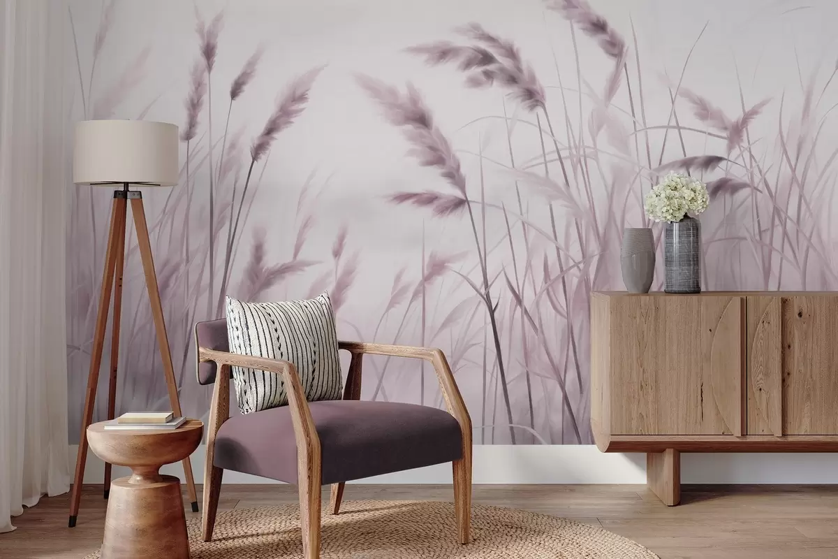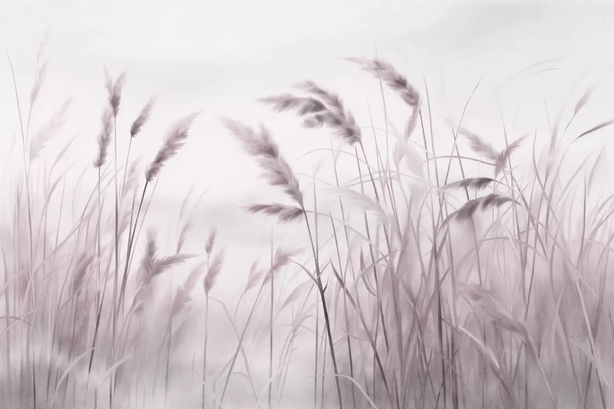 Fototapetes Augsta, teksturēta sausa zāle ar kviešu vārpām laukā uz maiga, gaiša fona Nr. w09648v2