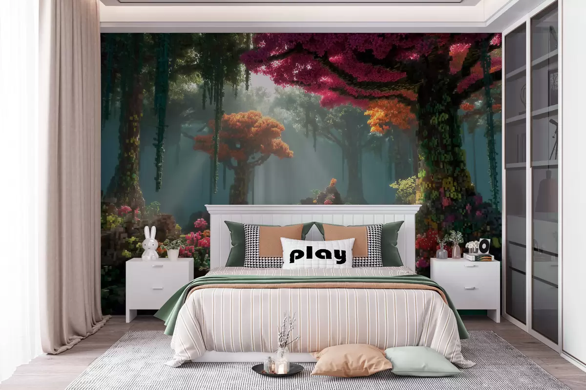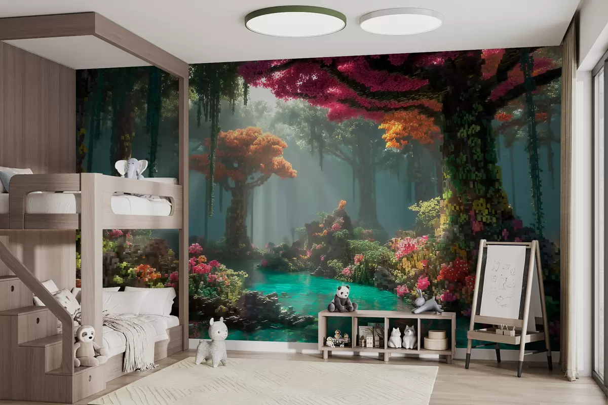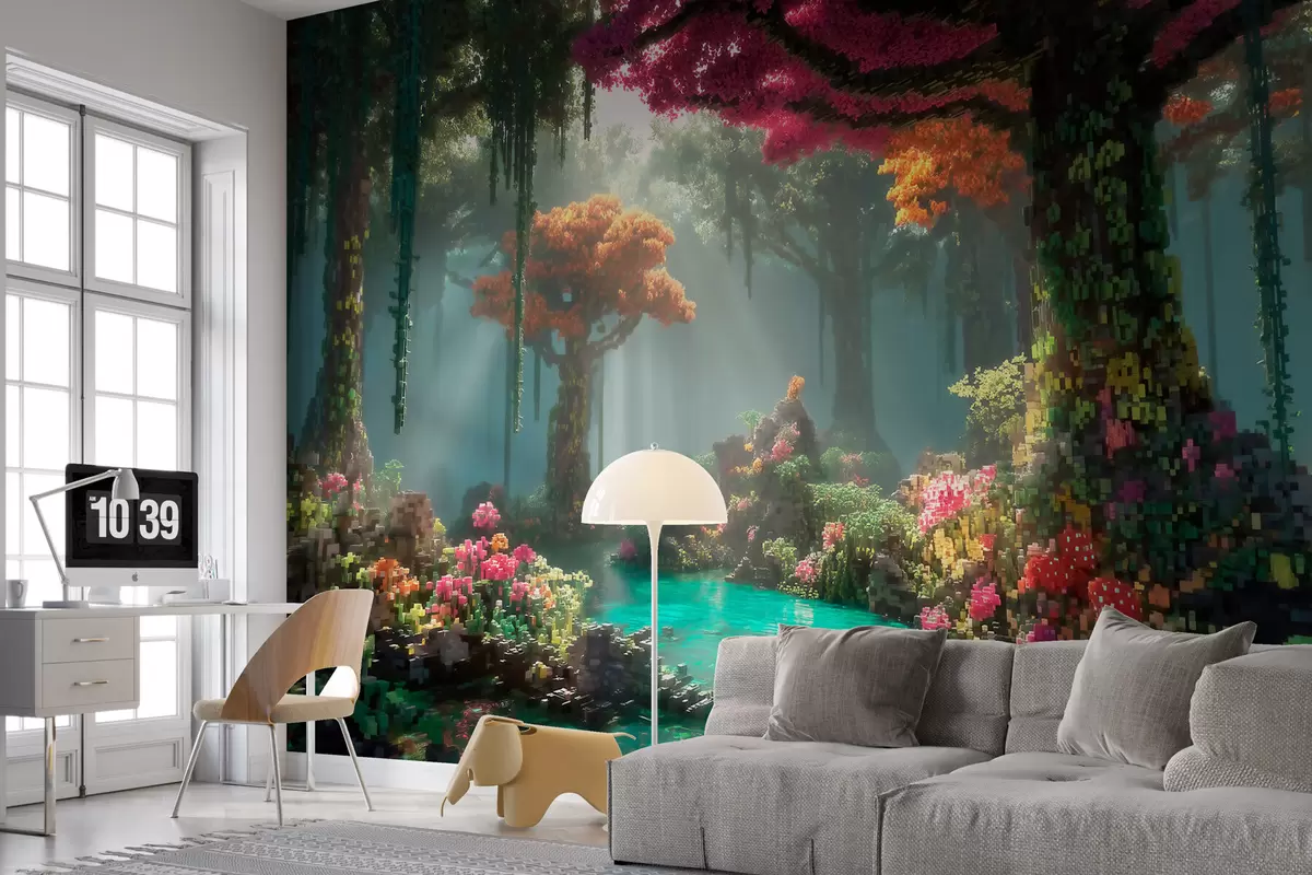 Fototapetes Pikseļu burvju meža birzs, kuras iedvesmas avots ir videospēles Nr. w09683