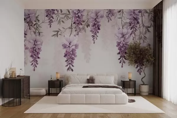 Fototapetes Delikātas, lielas lavandas zaras, kas karājas pie sienas, imitācija akvareļglezniecībā Nr. w09690