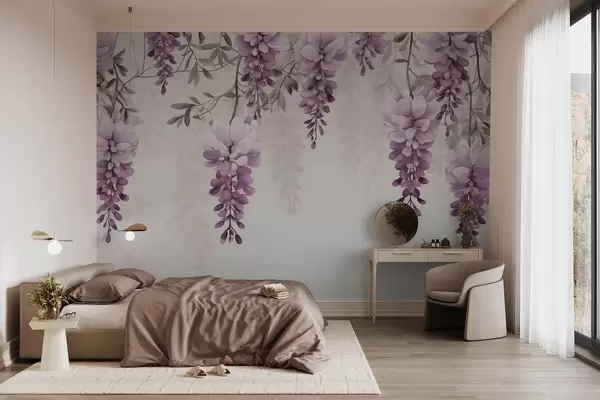 Fototapetes Delikātas, lielas lavandas zaras, kas karājas pie sienas, imitācija akvareļglezniecībā Nr. w09690