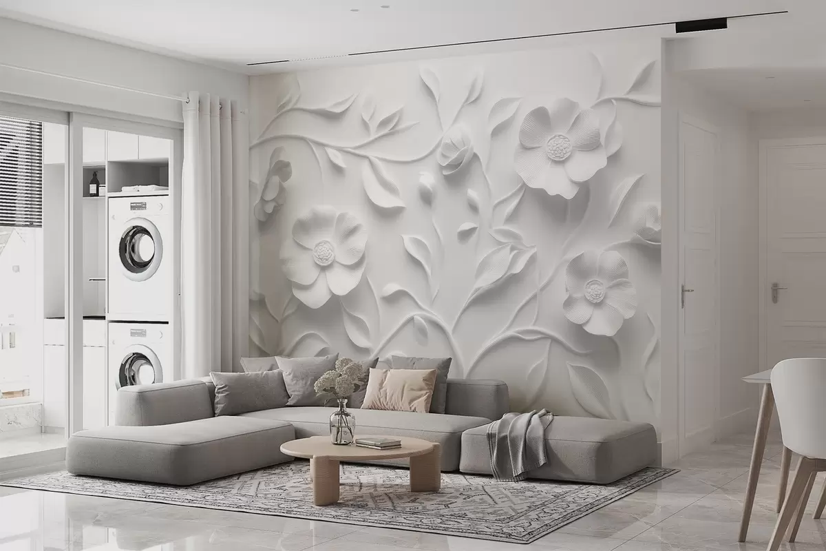 Fototapetes Pelēks reljefs ziedu ornamenti Nr. w09710