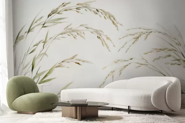 Fototapetes Maigas graudaugu zāles pasteļtoņos ar maigu akvareļa efektu Nr. w09712