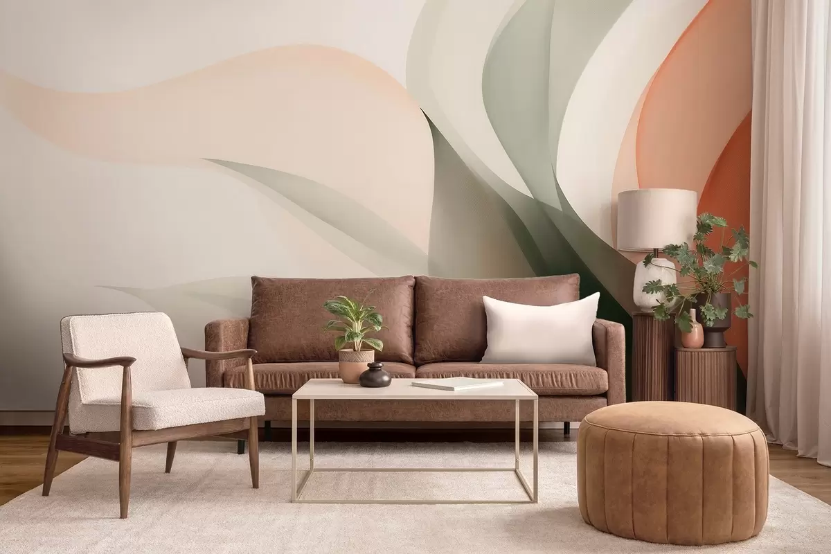 Fototapetes Abstraktas pasteļtoņu viļņi oranžā un zaļā krāsā Nr. w09718