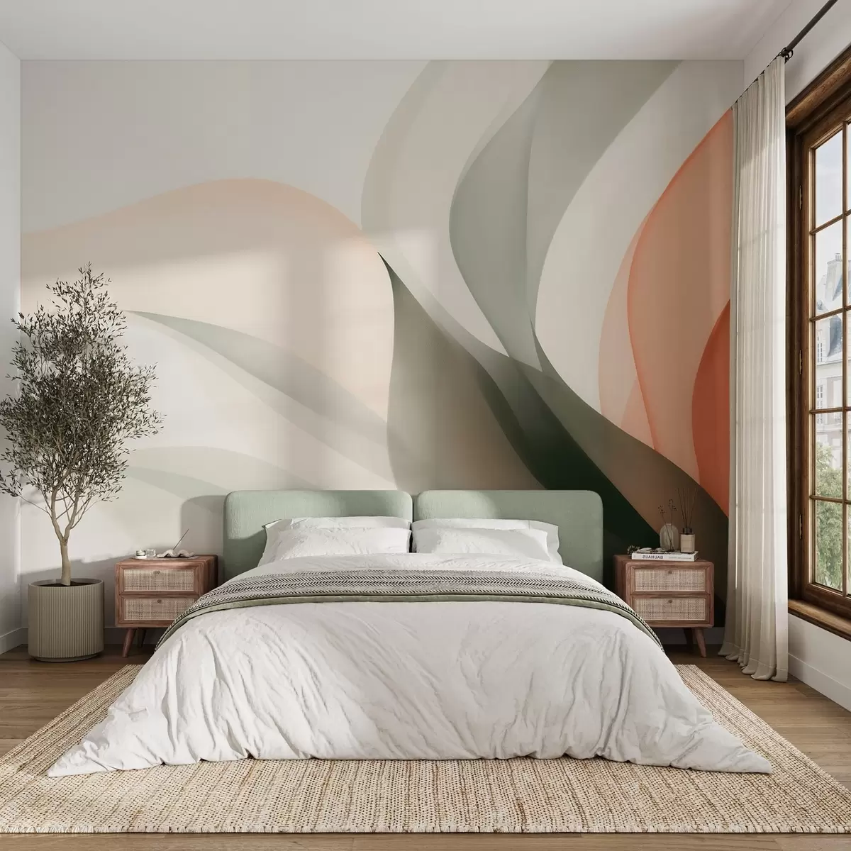 Fototapetes Abstraktas pasteļtoņu viļņi oranžā un zaļā krāsā Nr. w09718