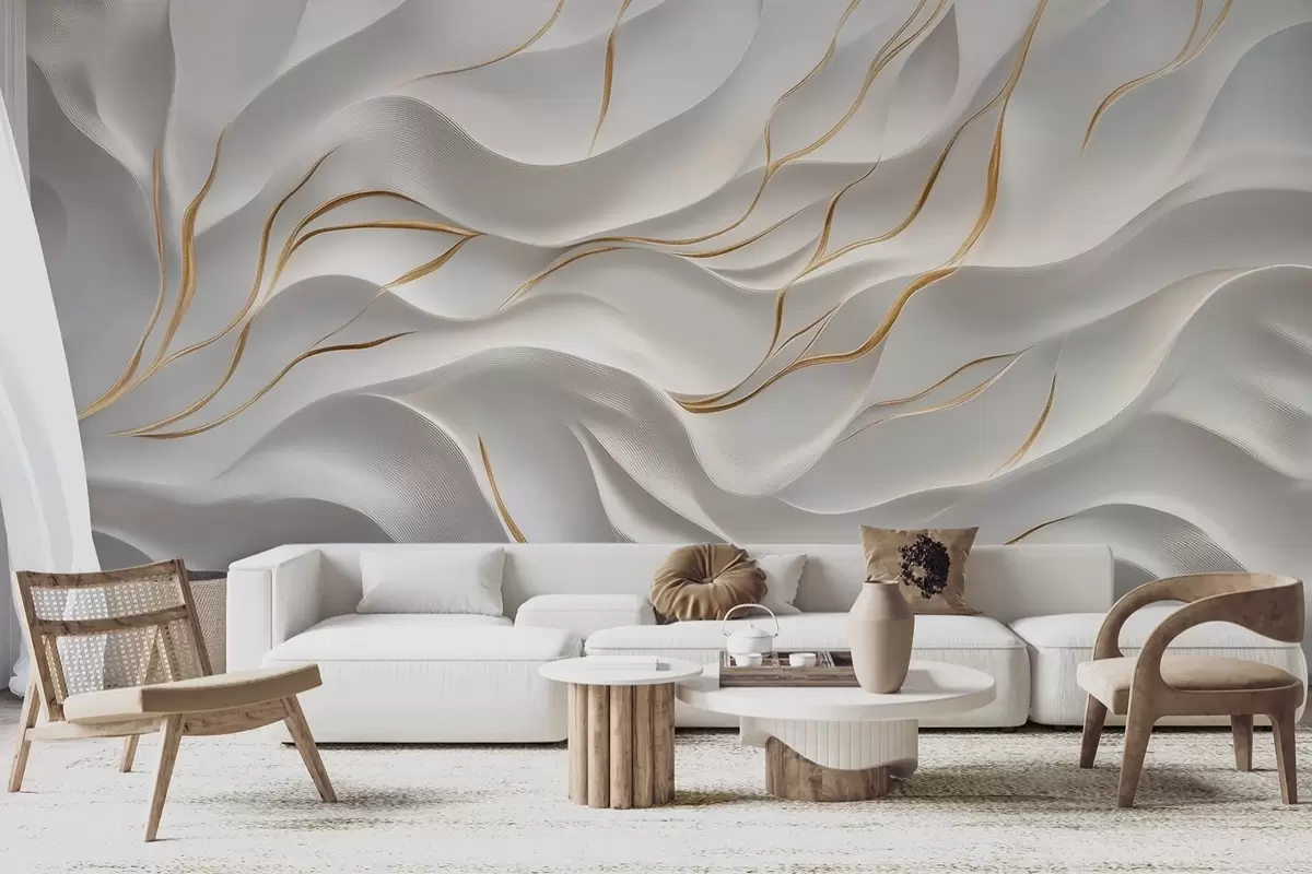 Fototapetes Pelēki reljefi viļņi ar dzelteniem akcentiem Nr. w09724