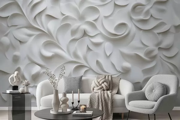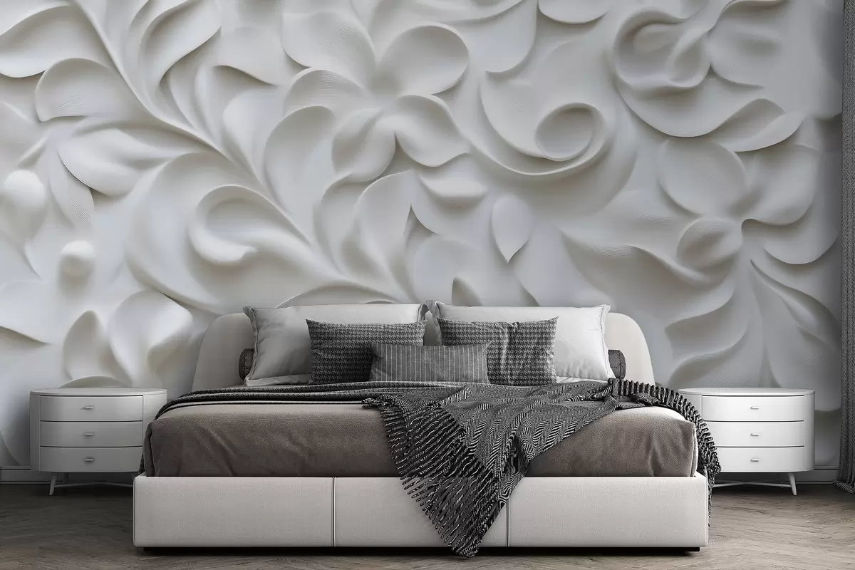 Fototapetes Pelēks trīsdimensiju ziedu ornamenti Nr. w09727
