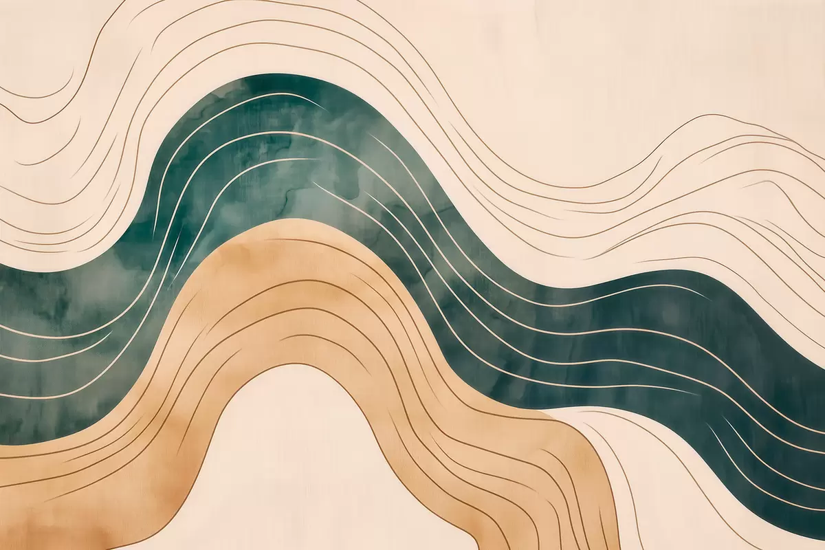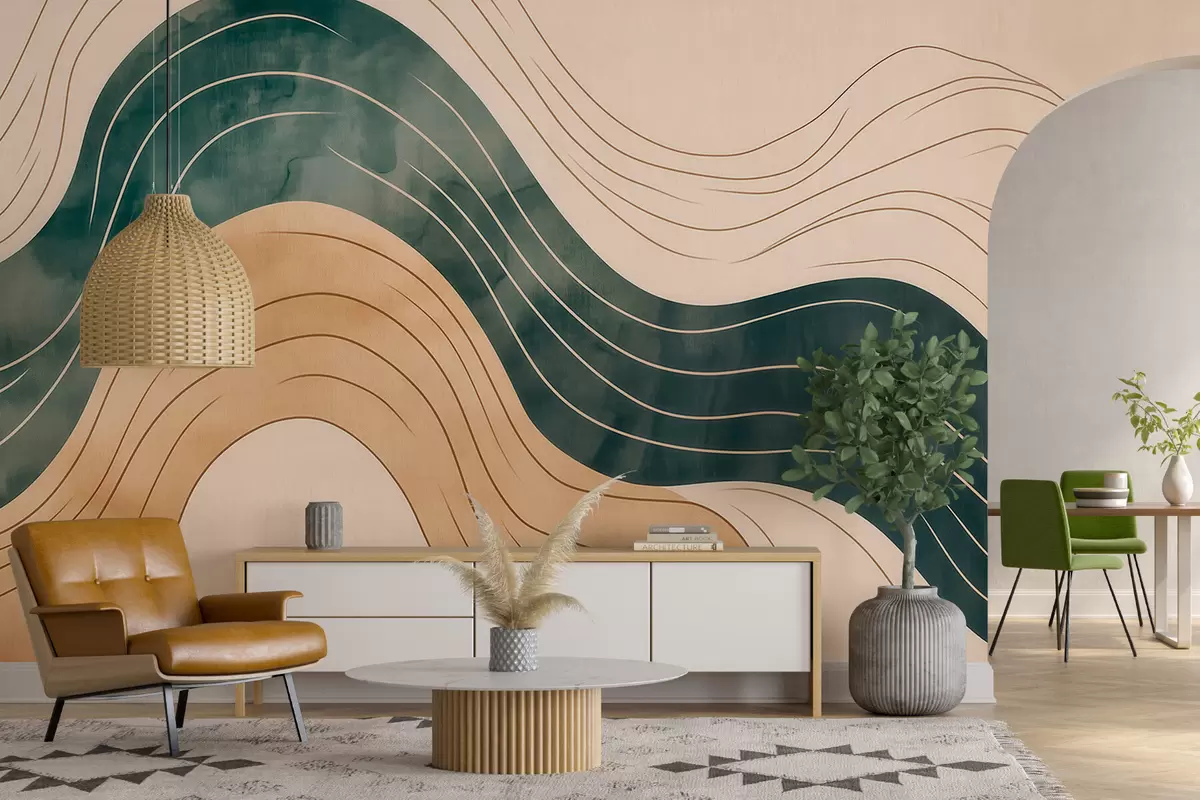 Fototapetes Abstraktas viļņotas līnijas dabiskā smilšu un smaragda toņos Nr. w09732