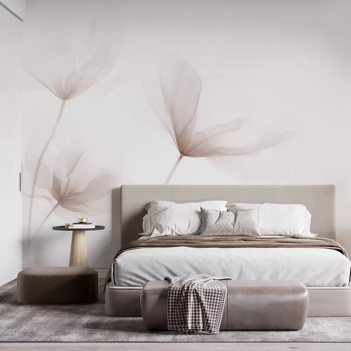 Fototapetes Gaisīgi smilškrāsas ziedi minimālisma gaismā Nr. w09734