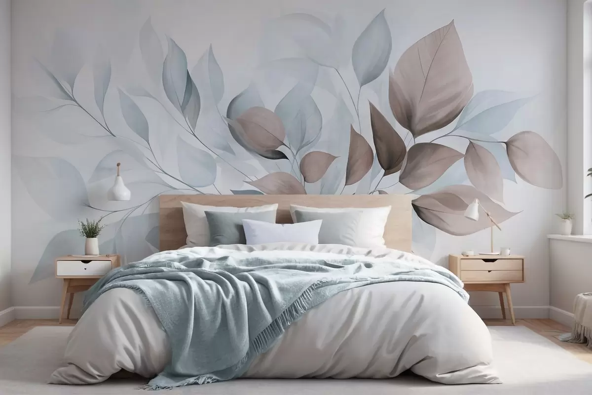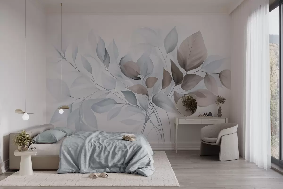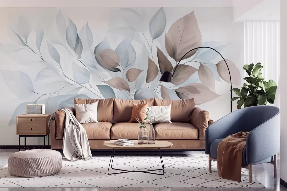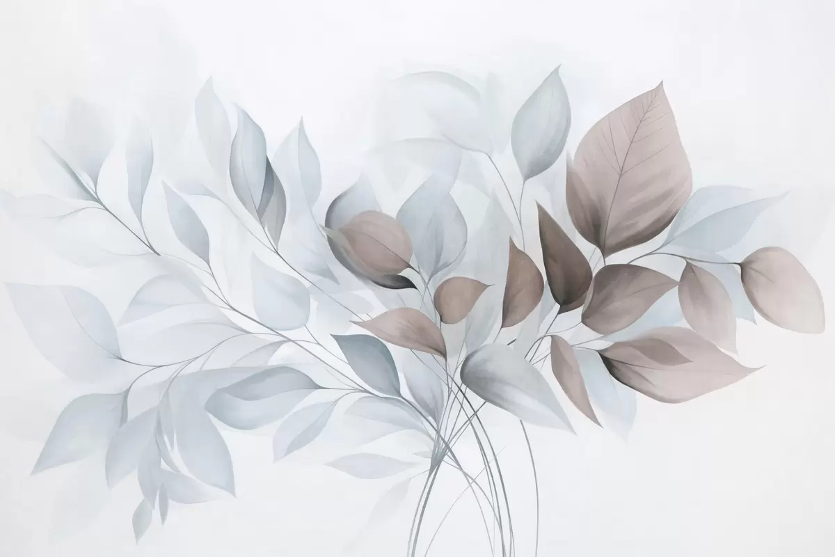 Fototapetes Abstraktas caurspīdīgas lapas zilas, smilškrāsas un brūnas toņos, faktūru māksla Nr. w09744v1