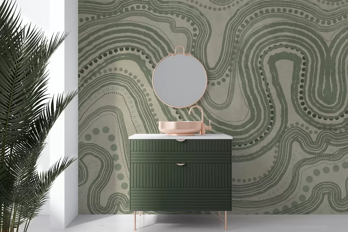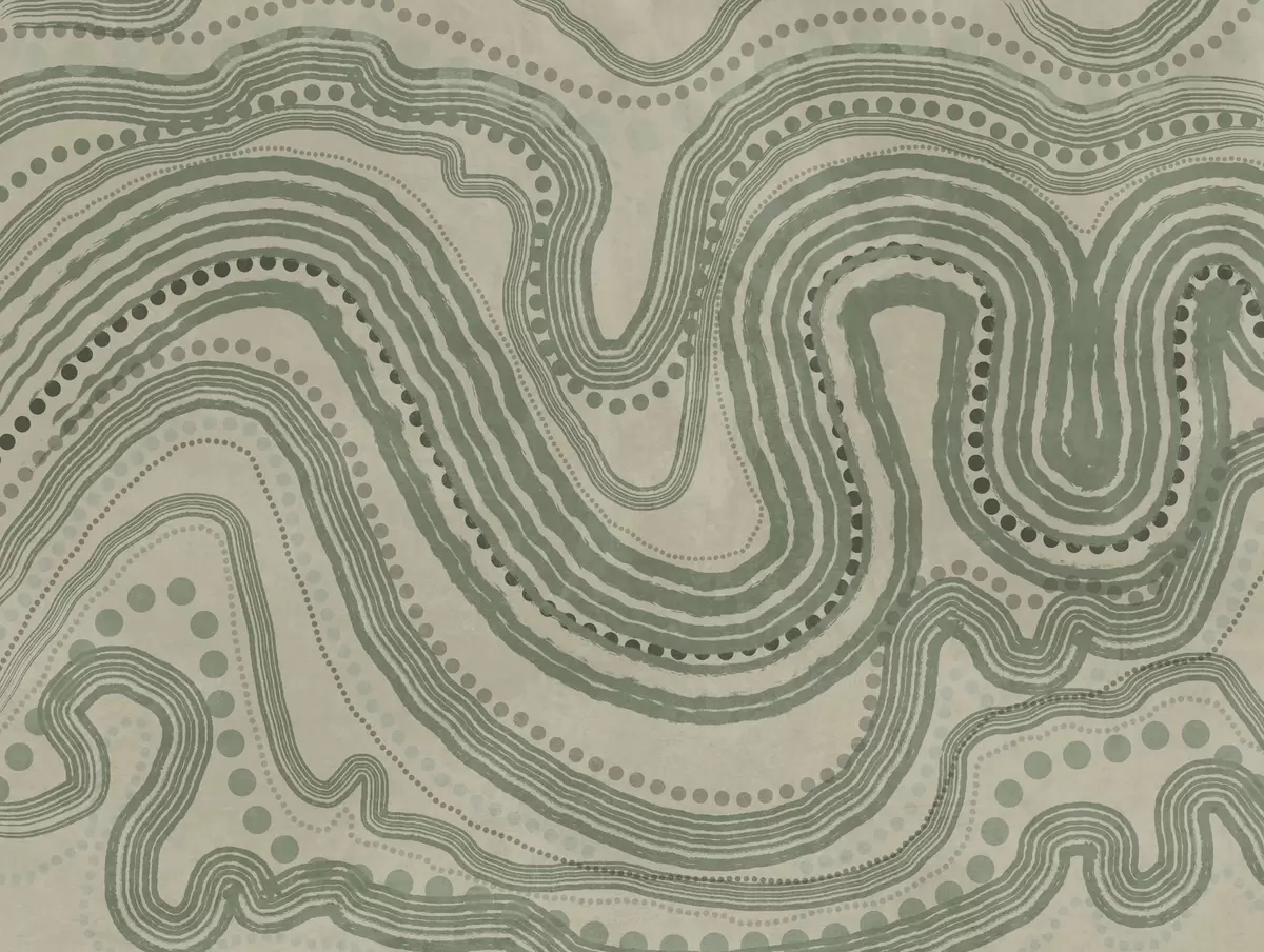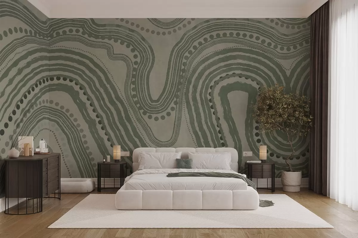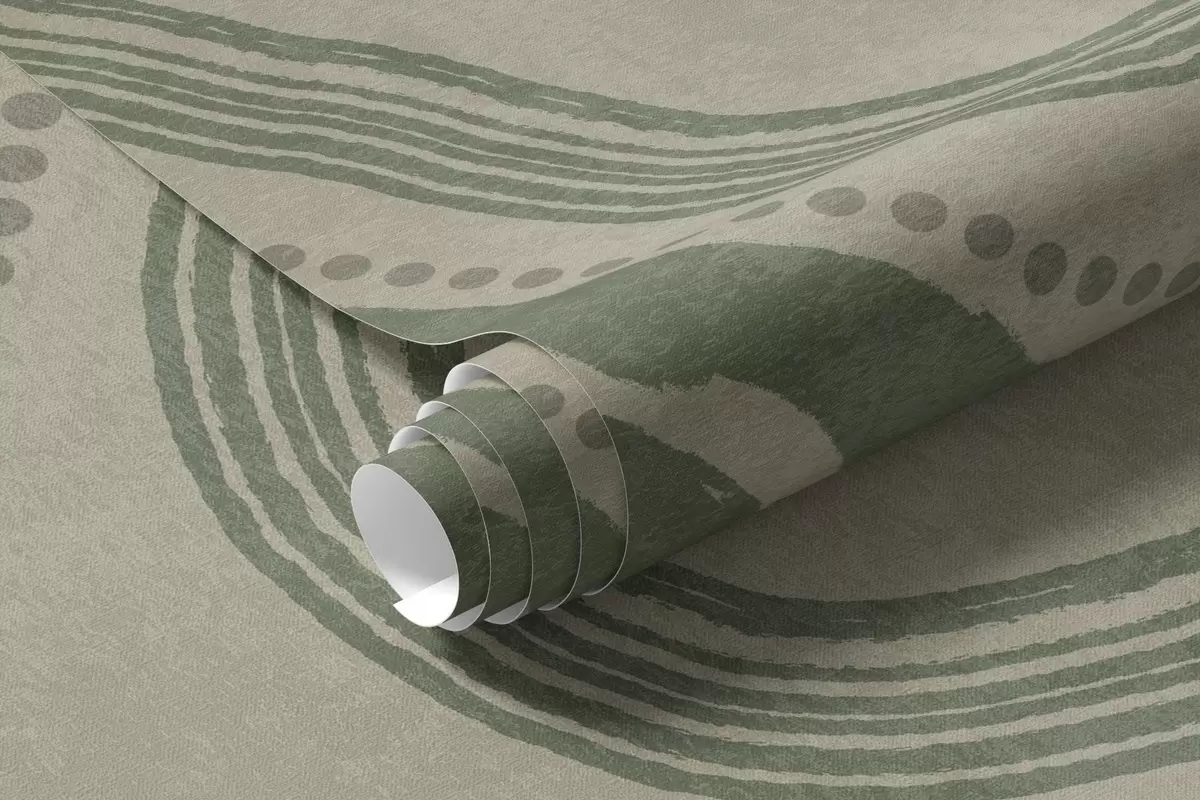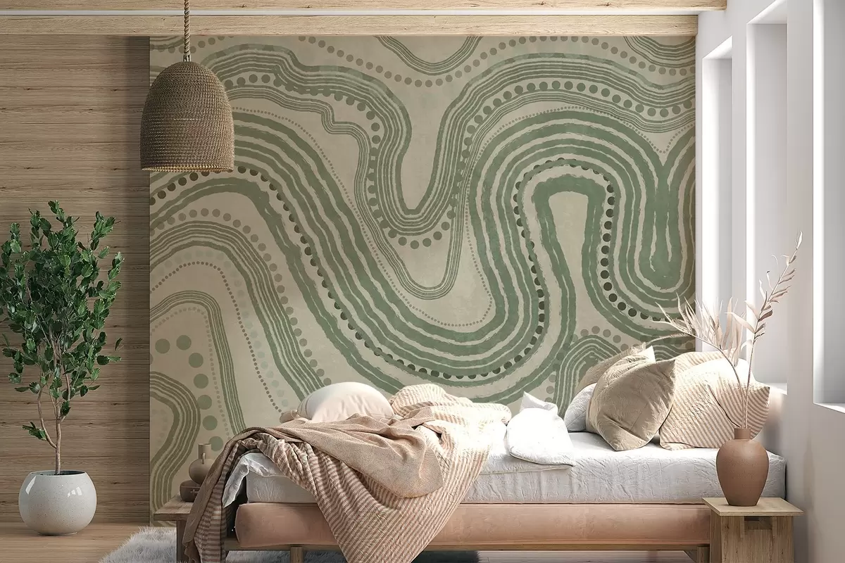 Fototapetes Abstraktas zaļas un smilškrāsas viļņotas līnijas un punkti, moderns teksturēts mākslas darbs Nr. w09747