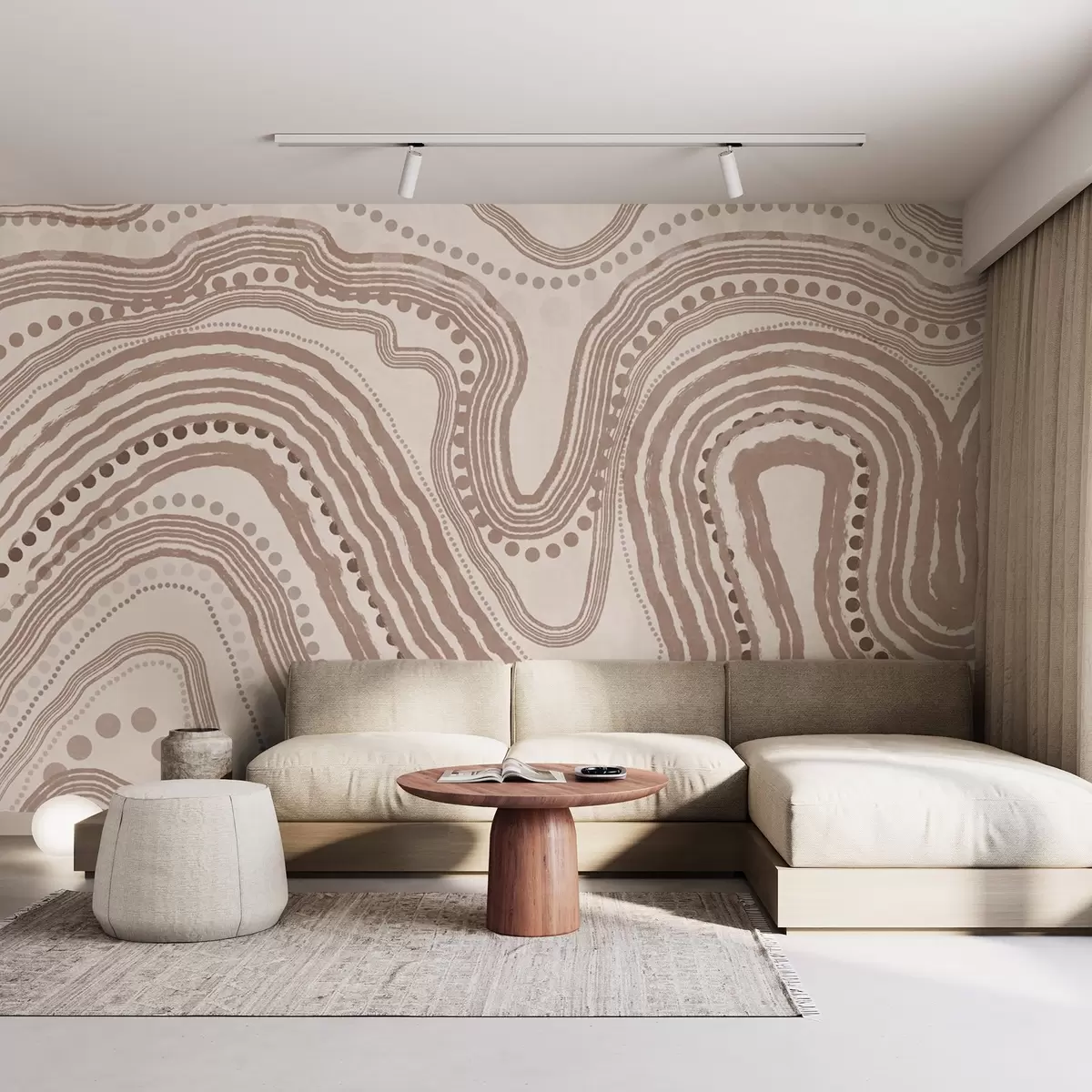 Fototapetes Abstraktas brūnas un smilškrāsas viļņotas līnijas un punkti, moderns teksturēts mākslas darbs Nr. w09747v1