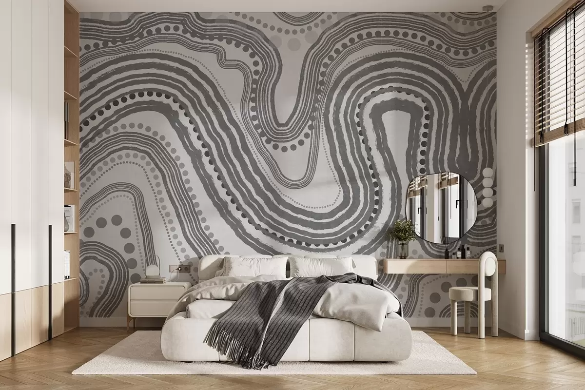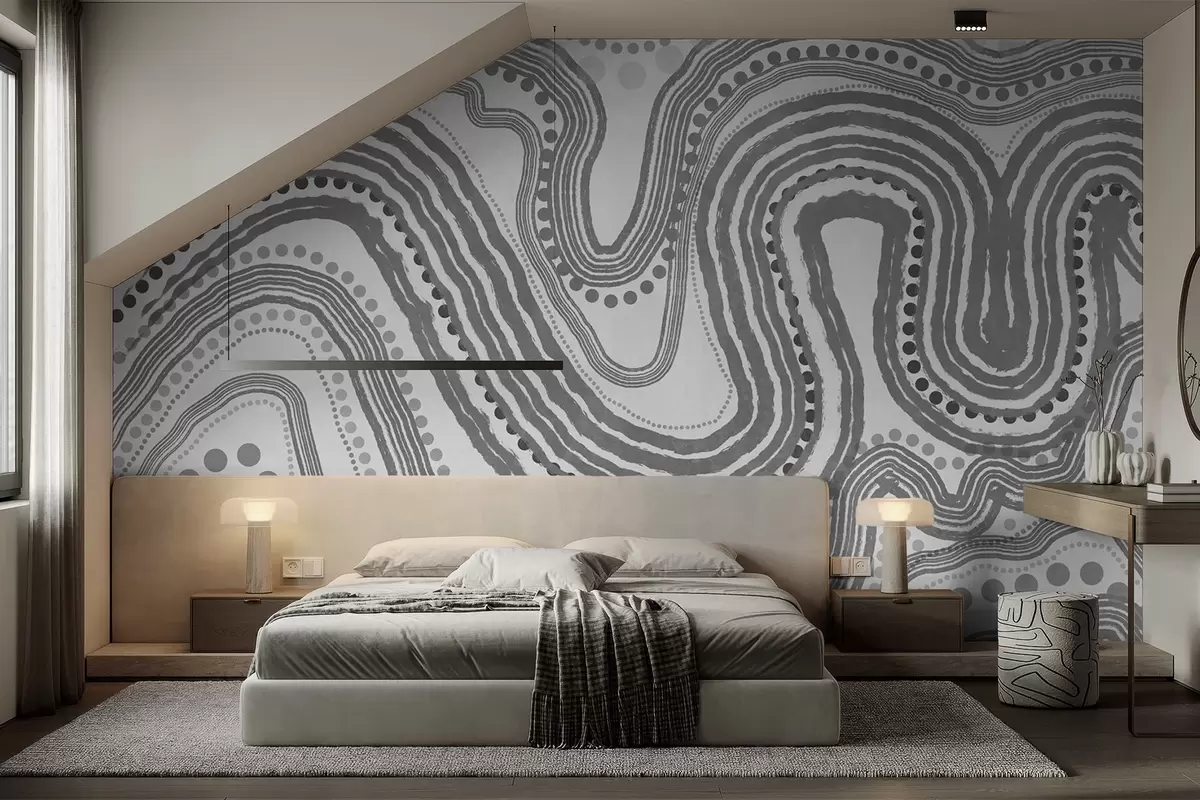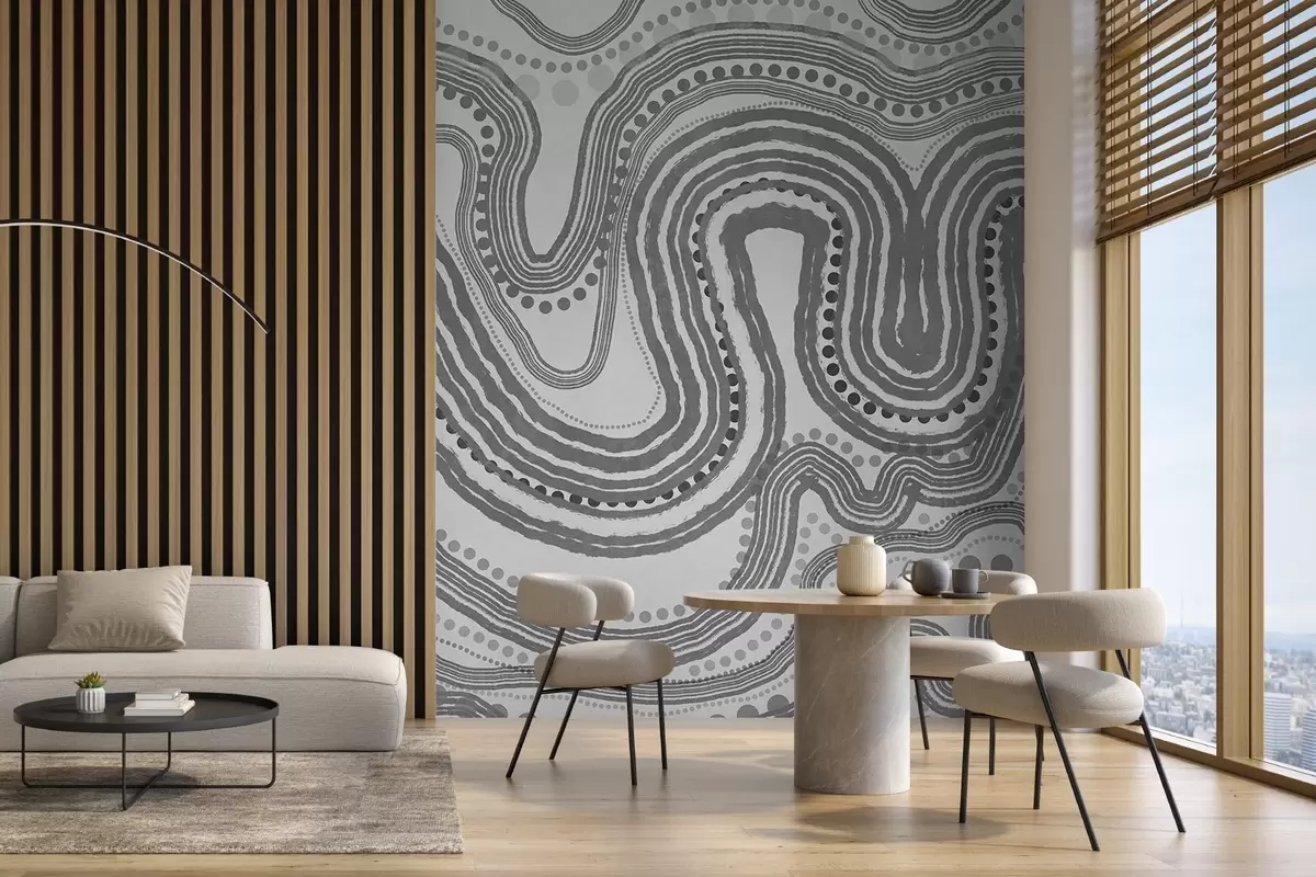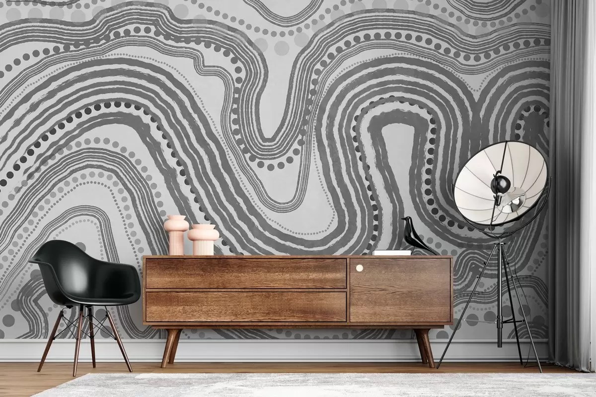Fototapetes Abstraktas tumši pelēkas viļņotas līnijas un punkti, moderns teksturēts mākslas darbs Nr. w09747v2