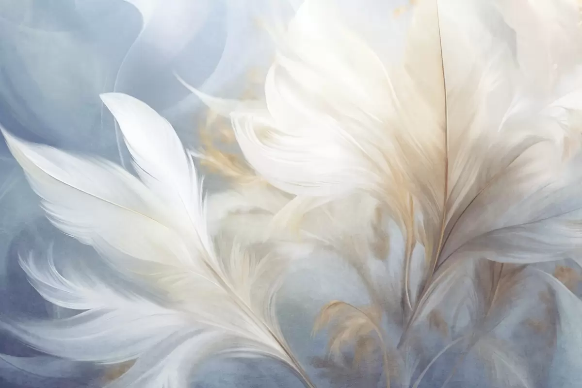 Fototapetes Teksturētas, mīkstas, baltas spalvas un izplūdušas pampas zāles ar zilu un baltu fonu Nr. w09758