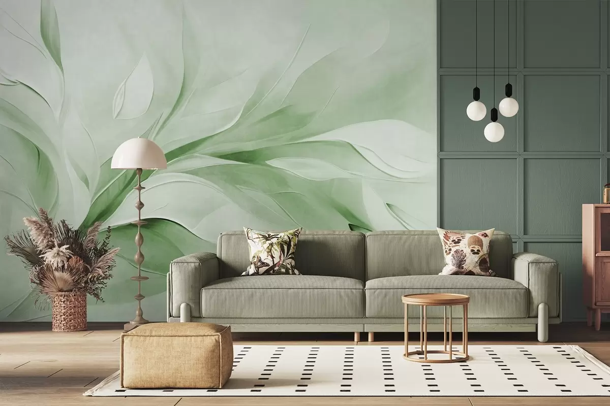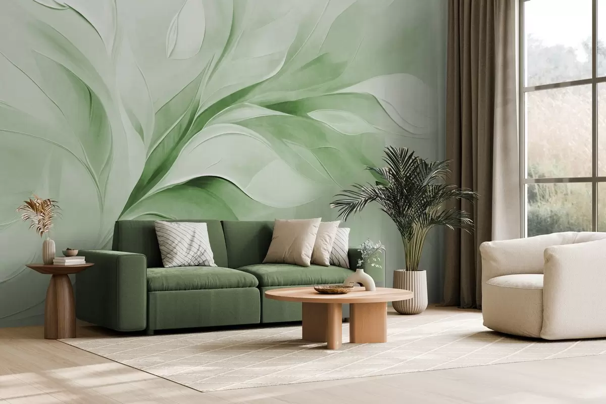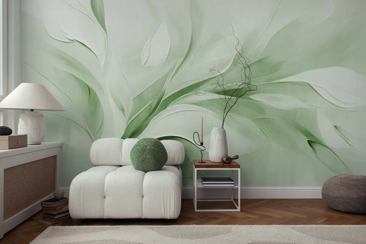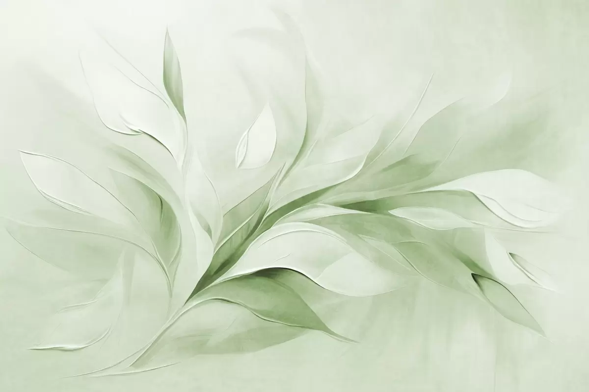 Fototapetes Abstrakts teksturēts glezniecības stils ar zaļām un baltām plūstošām lapām Nr. w09765v2