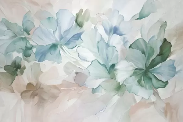 Fototapetes Abstraktas fantāzijas ziedi rozā, persiku un lavandas toņos glezniecības stilā, teksturēta māksla Nr. w09767
