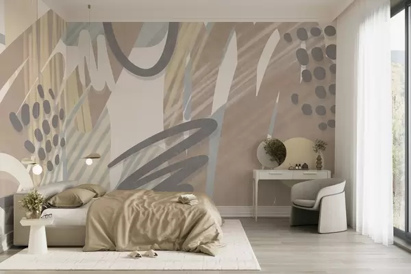 Fototapetes Abstrakts teksturēts raksts ar organiskiem kontūriem, skicēm un punktiņiem klusās pasteļtoņos Nr. w09774