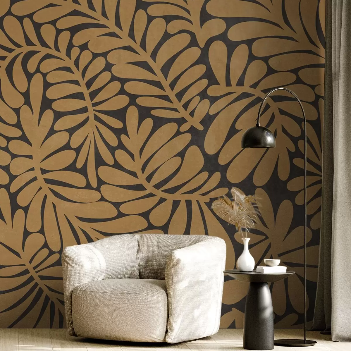 Fototapetes Stilizētas sinepju dzeltenas lapas uz tumši pelēka fona, faktūru māksla Nr. w09775