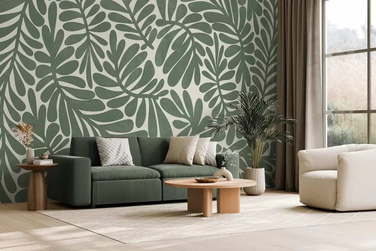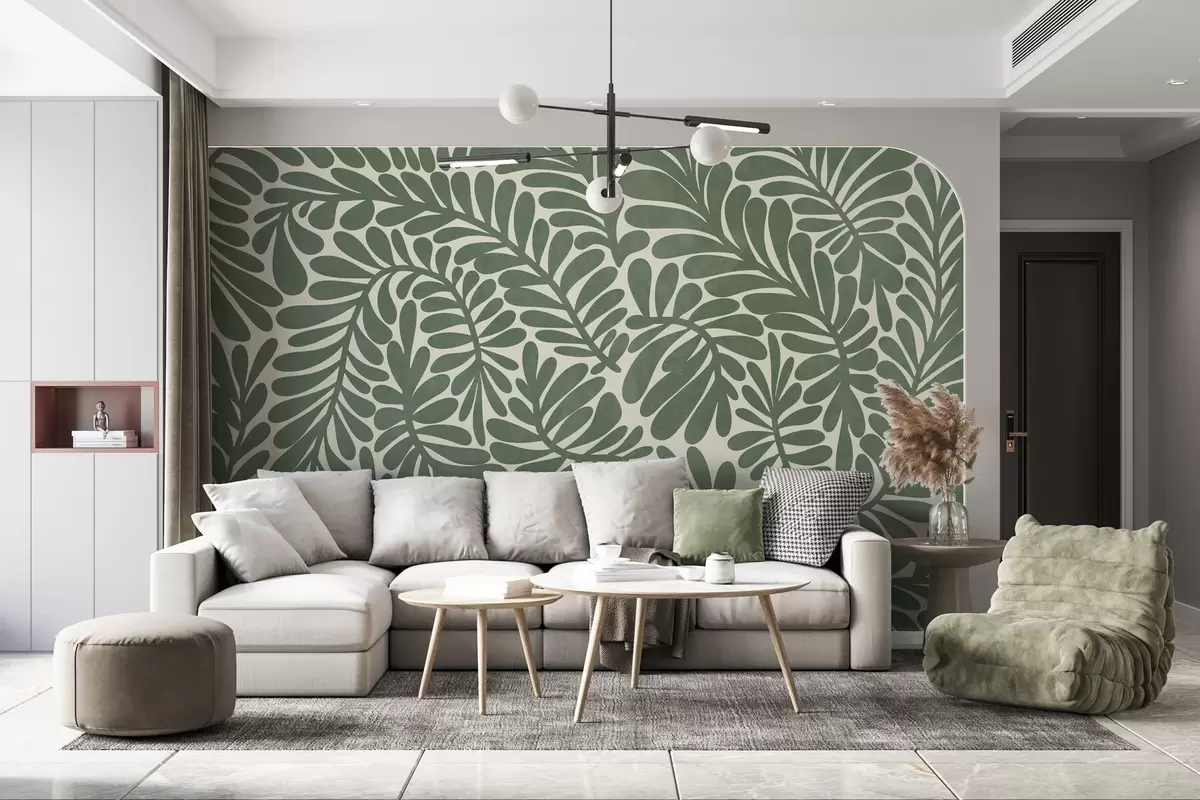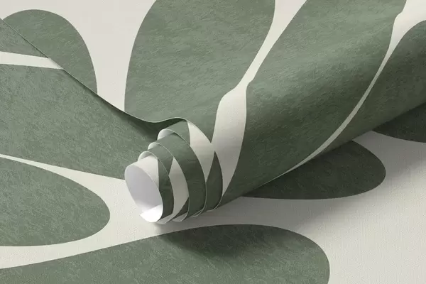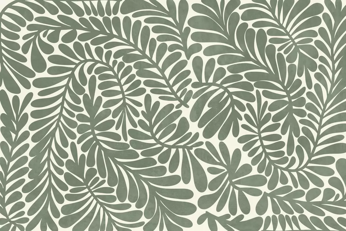 Fototapetes Stilizētas zaļas lapas uz gaiša fona, teksturēts mākslas darbs Nr. w09775v2