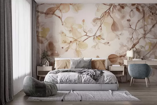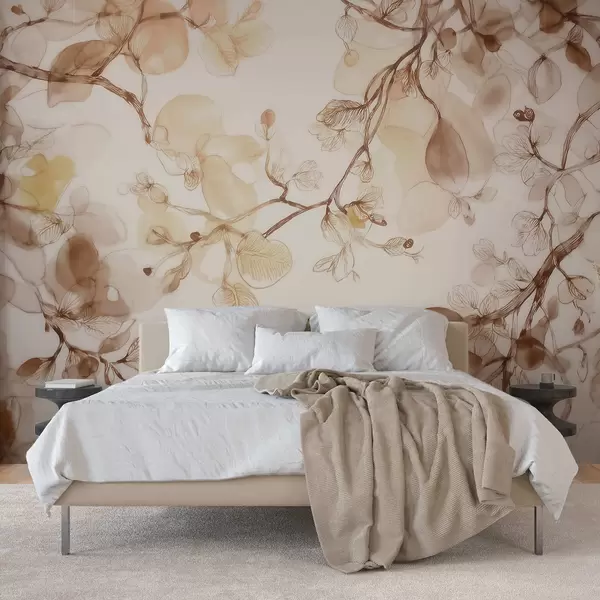 Fototapetes Gaisīgas, karājošas zaru kompozīcijas smilškrāsas toņos akvareļa stilā Nr. w09795