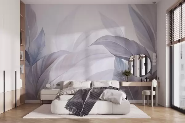 Fototapetes Lielas, gaiši zilas un violetas tropu lapas ar maigām, pasteļtoņu krāsām un faktūru Nr. w09816v1