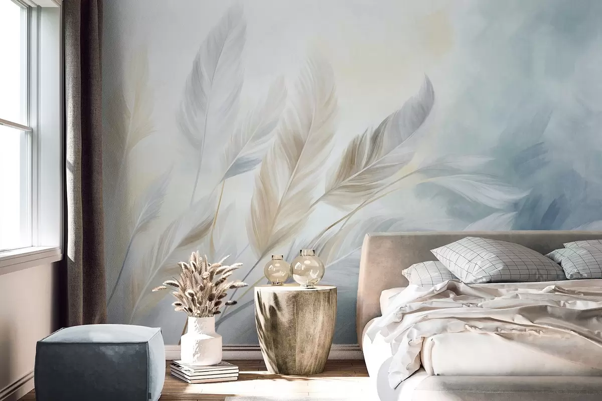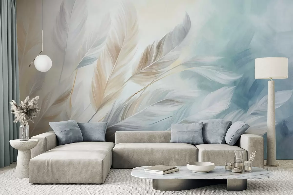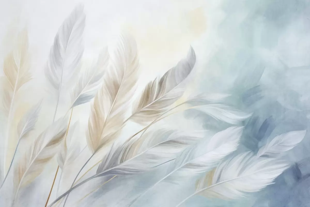 Fototapetes Teksturētas pasteļtoņu spalvas ar maigām, plānām malām uz akvareļa stilā veidota fona Nr. w09833