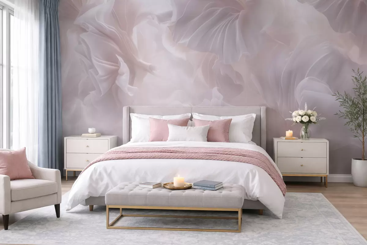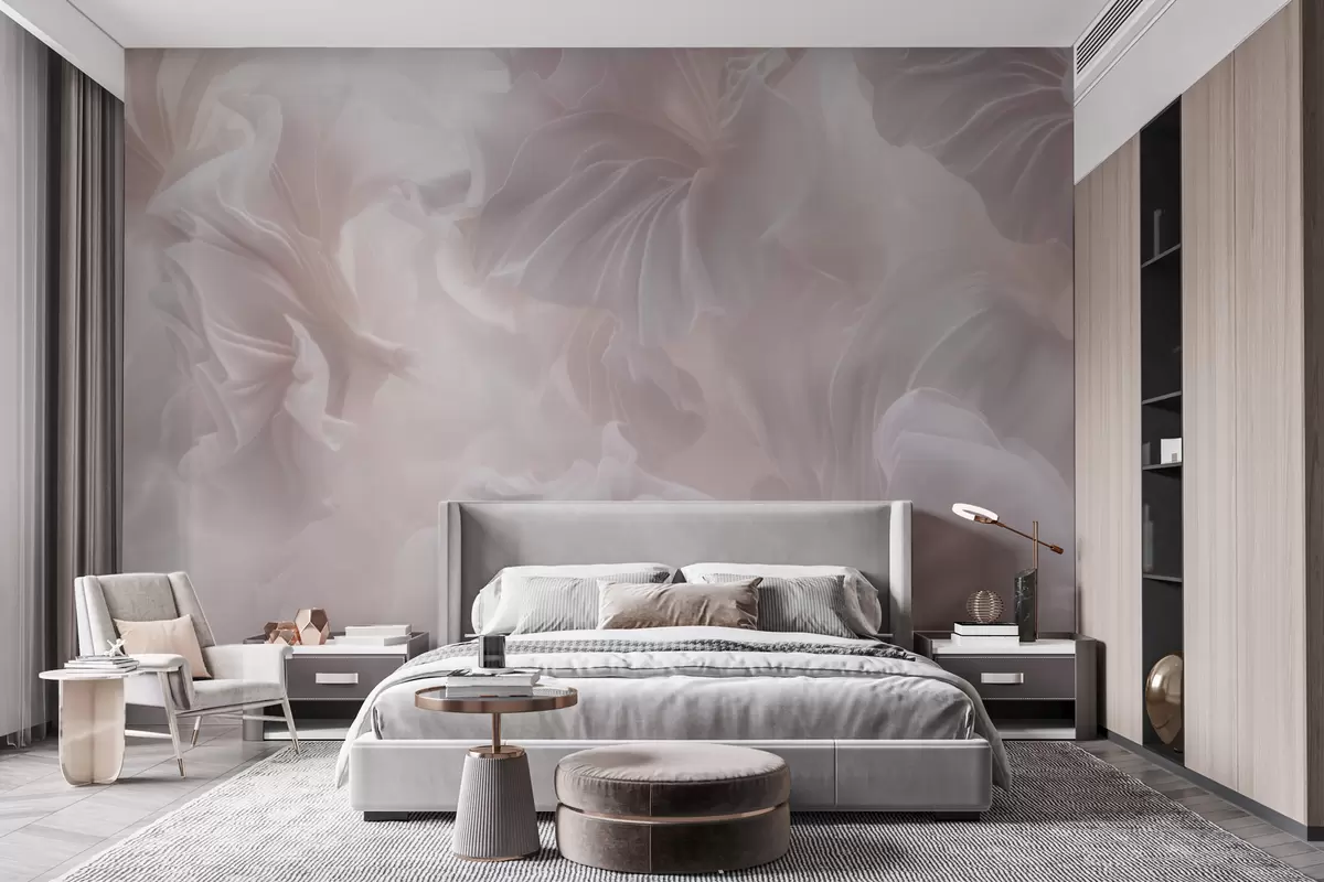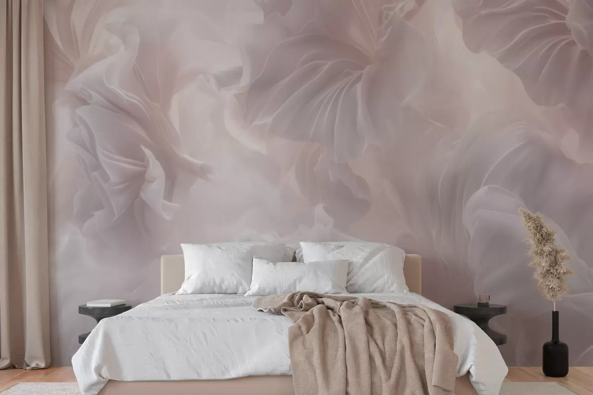 Fototapetes Abstraktas ziedu formas ar plūstošiem ziedlapiem pasteļtoņos Nr. w09841
