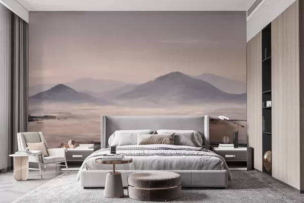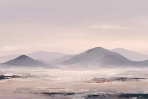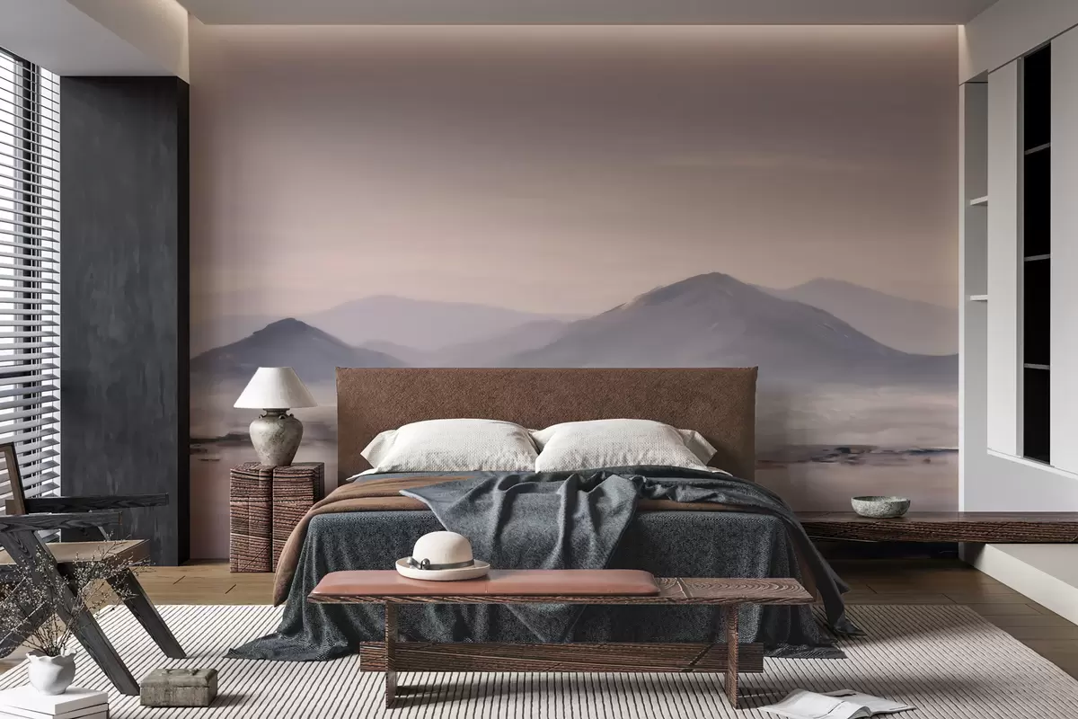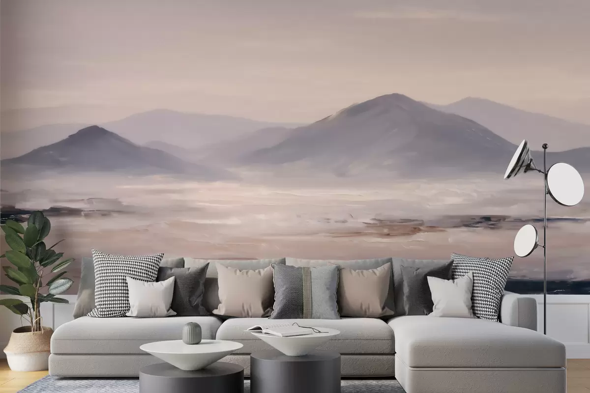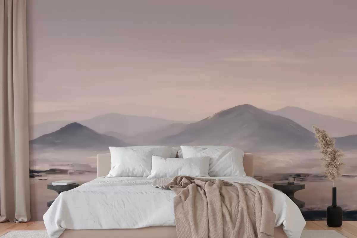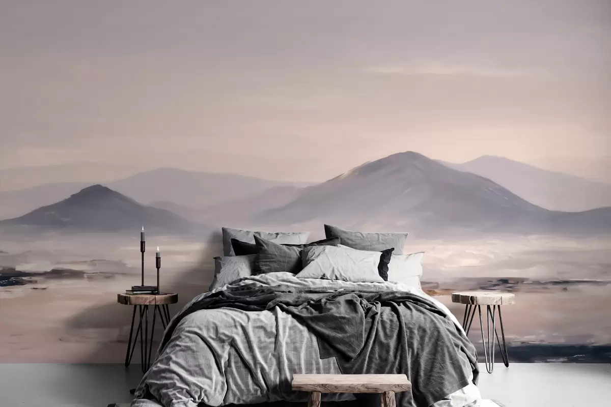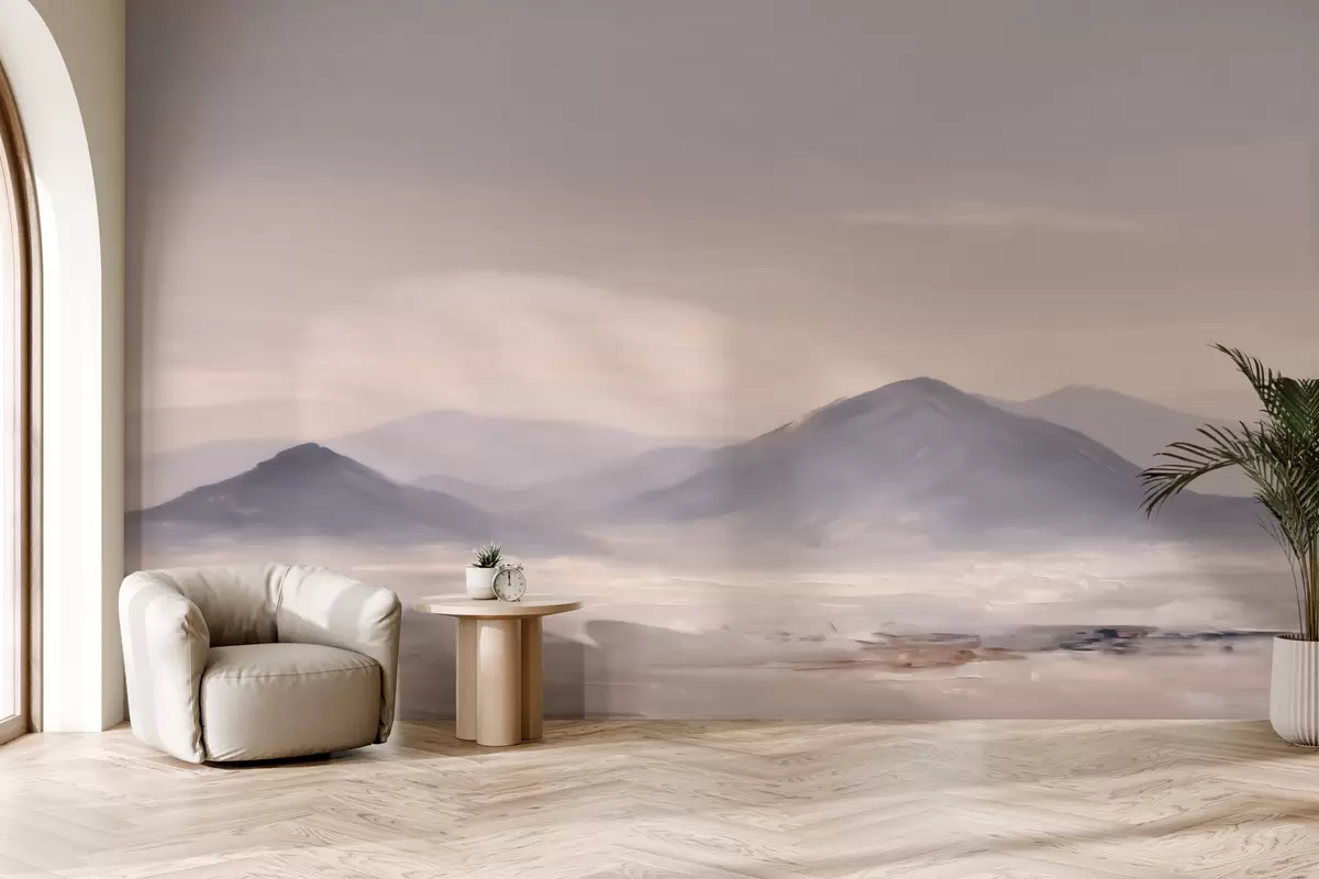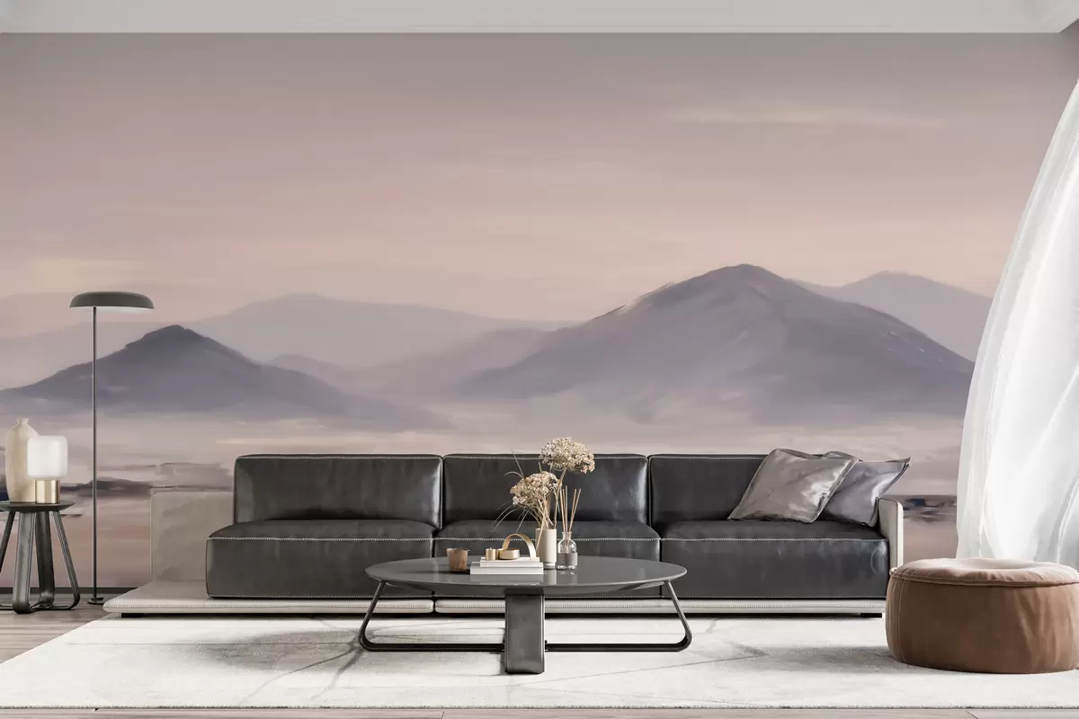 Fototapetes Miglas apklāts kalnu ainava ar maigām gaismas un gaisa pārejām, radot maskas efektu Nr. w09844