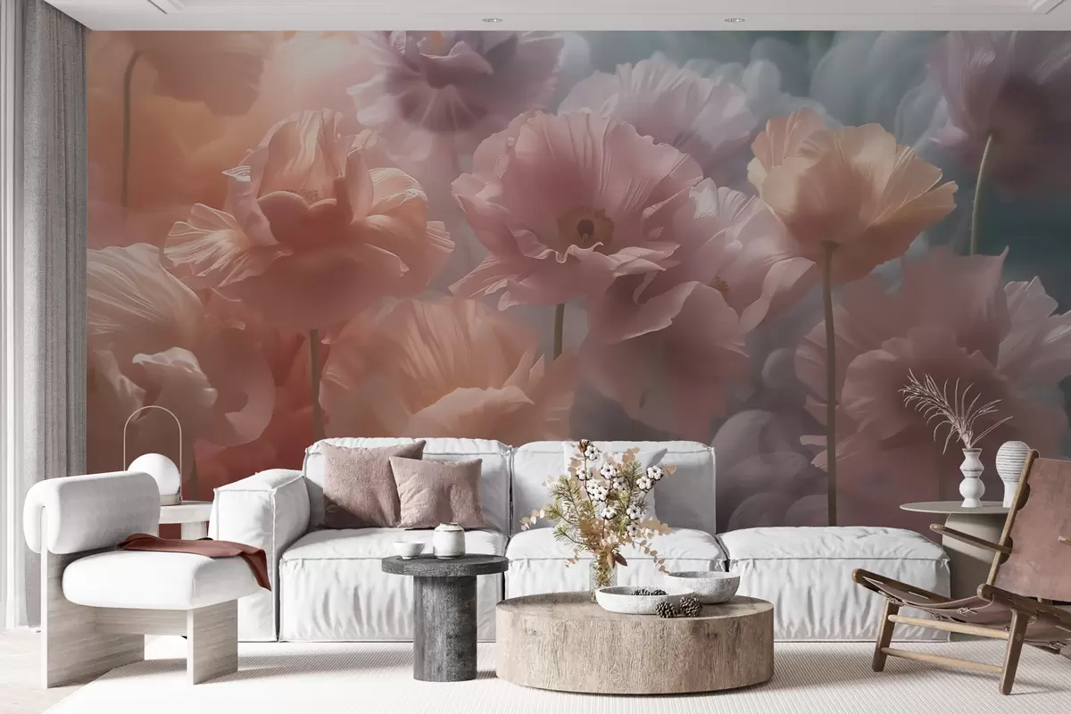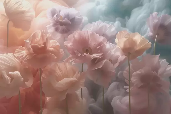Fototapetes Gaisīgi ziedi ar caurspīdīgiem ziedlapiem maigā rīta gaismā Nr. w09847