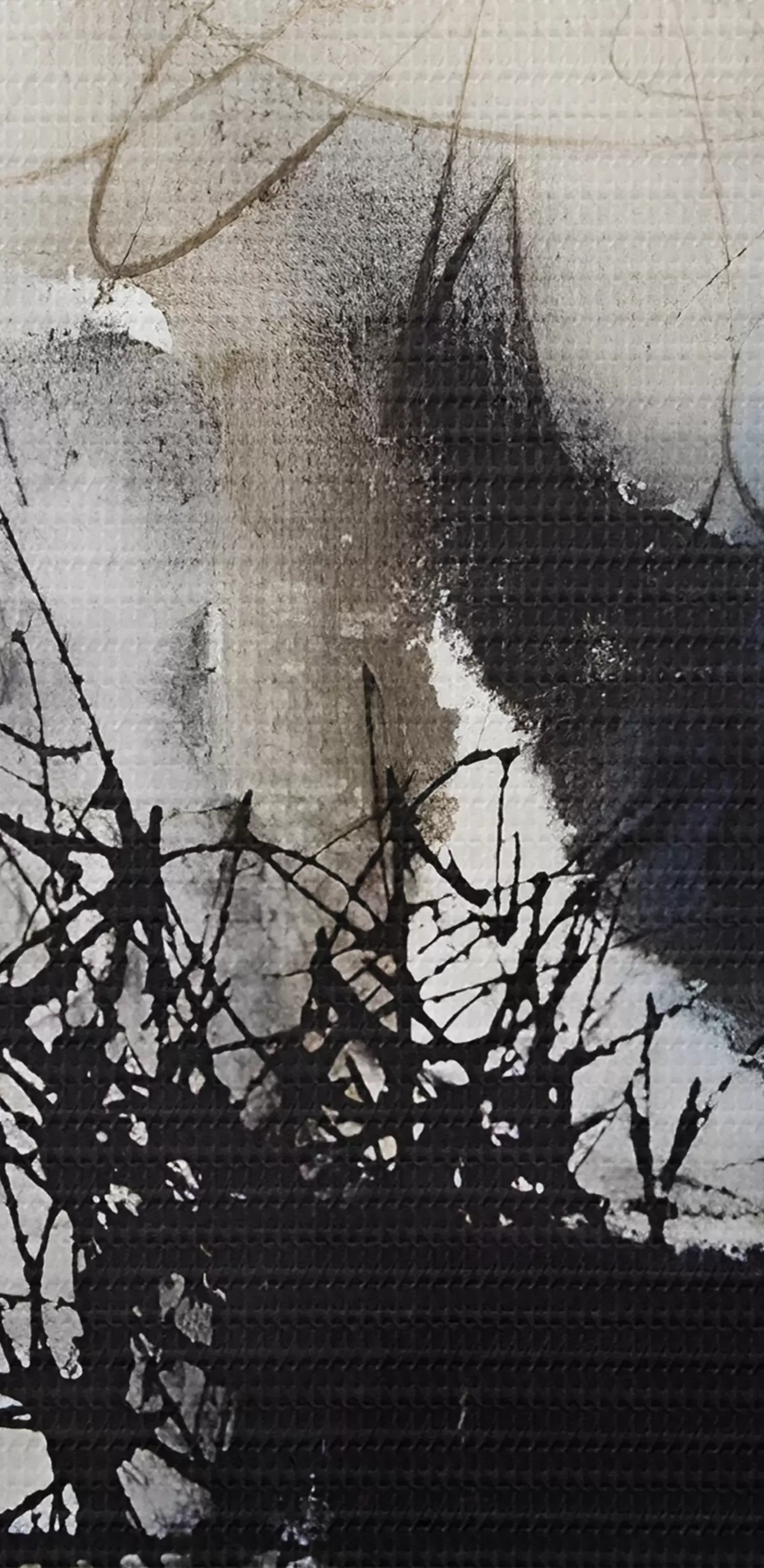 Smalkais diegu pinums uz šī audekla atgādina profesionālu mākslinieku audeklu virsmu.
