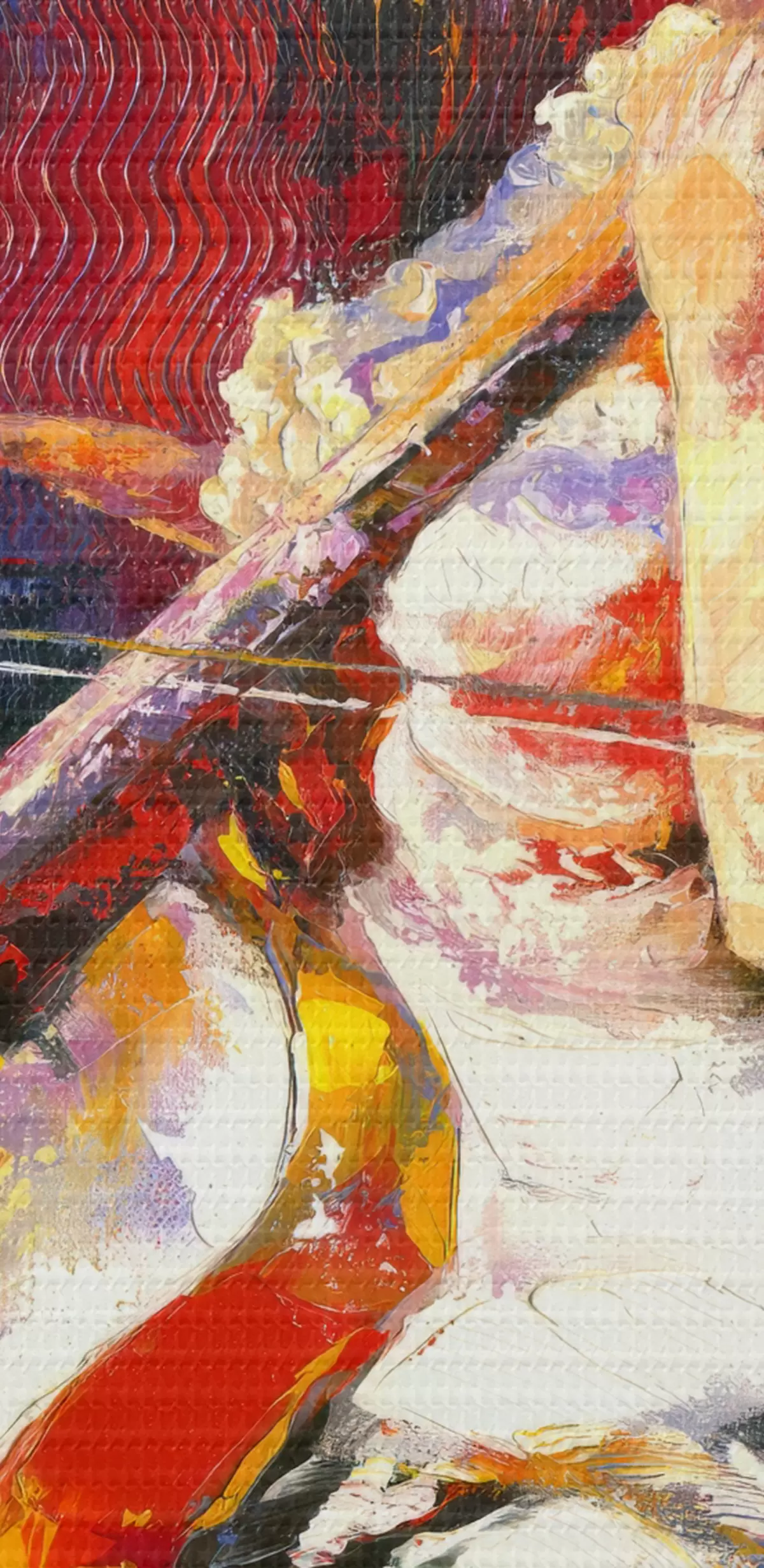 Smalkais diegu pinums uz šī audekla atgādina profesionālu mākslinieku audeklu virsmu.