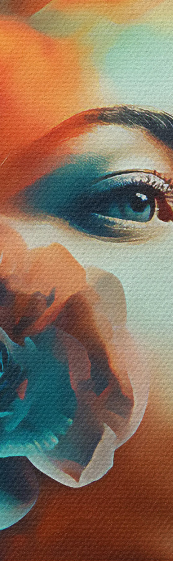 Smalkais diegu pinums uz šī audekla atgādina profesionālu mākslinieku audeklu virsmu.