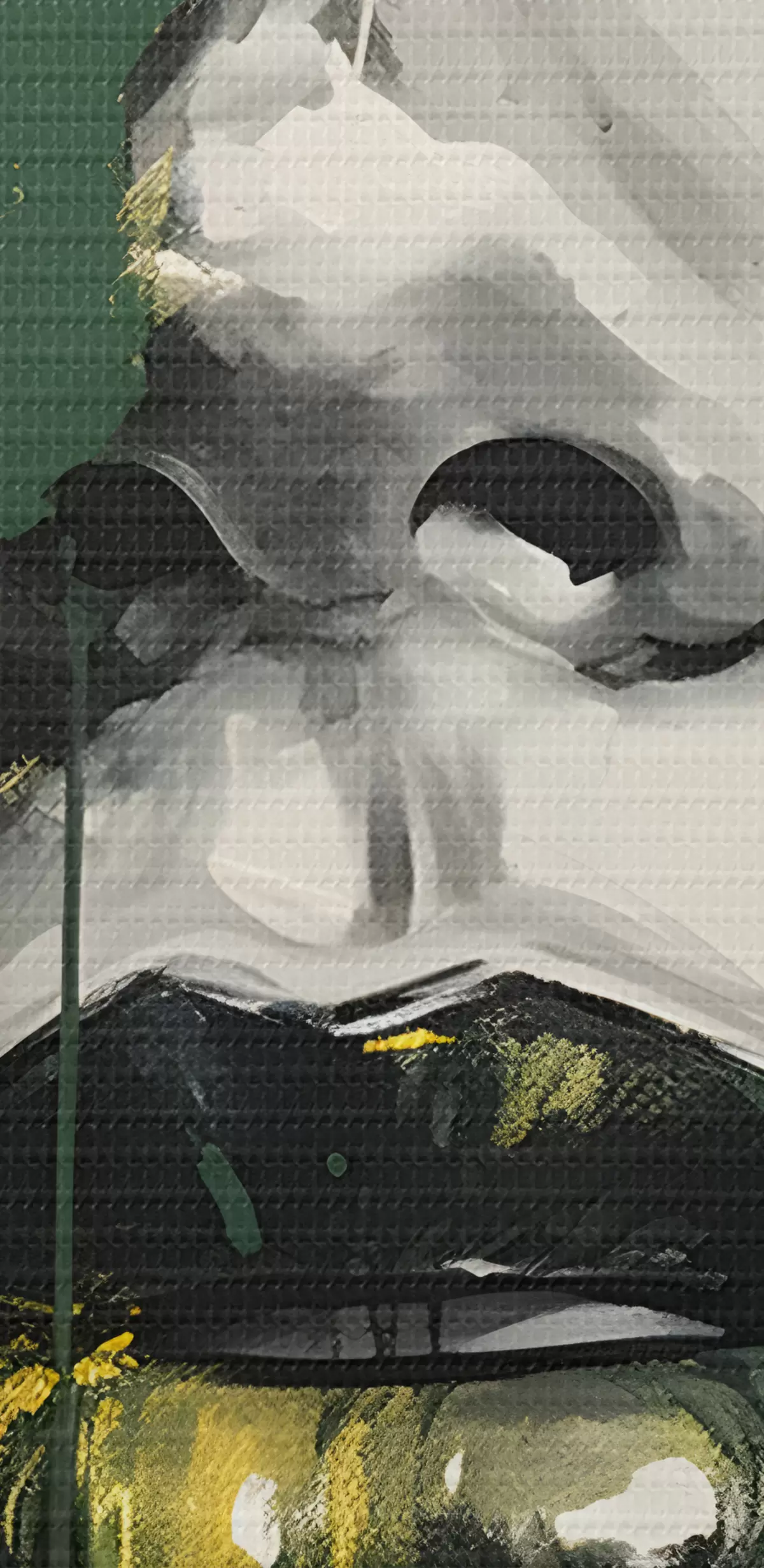 Smalkais diegu pinums uz šī audekla atgādina profesionālu mākslinieku audeklu virsmu.