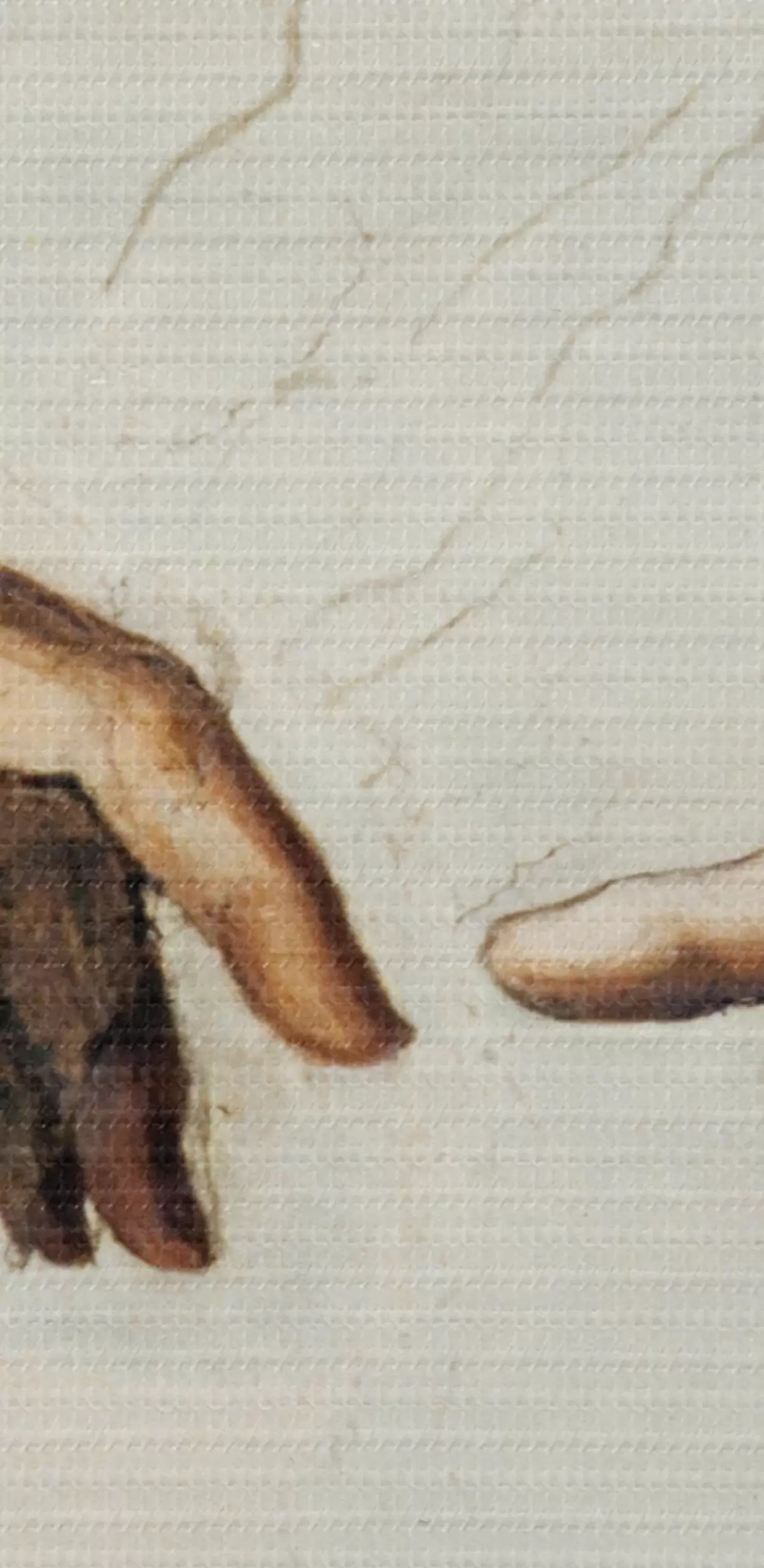 Smalkais diegu pinums uz šī audekla atgādina profesionālu mākslinieku audeklu virsmu.