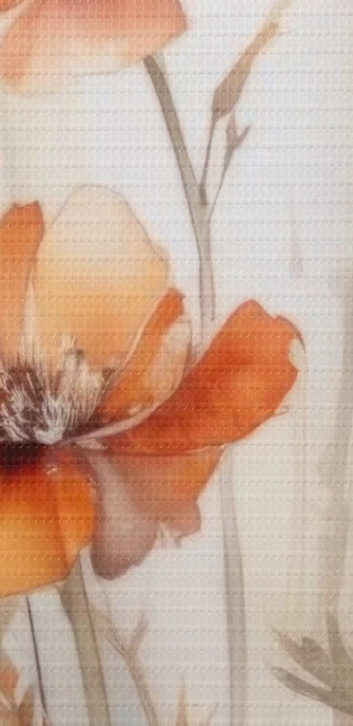 Smalkais diegu pinums uz šī audekla atgādina profesionālu mākslinieku audeklu virsmu.