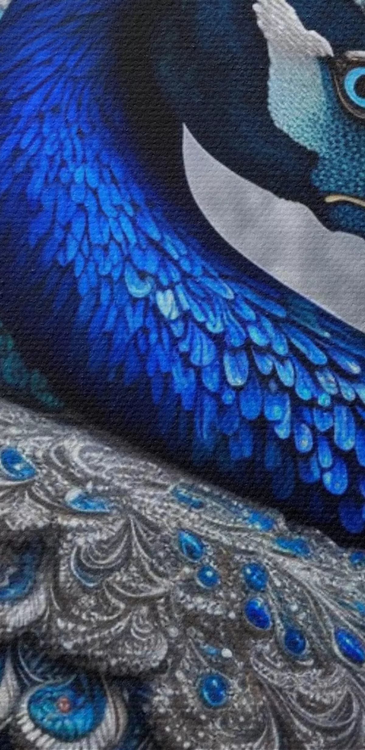 Smalkais diegu pinums uz šī audekla atgādina profesionālu mākslinieku audeklu virsmu.