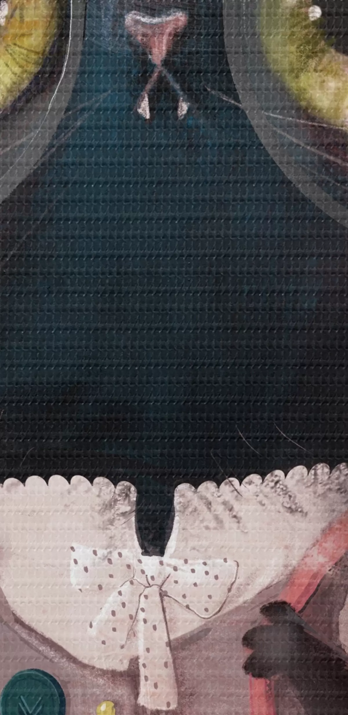 Smalkais diegu pinums uz šī audekla atgādina profesionālu mākslinieku audeklu virsmu.