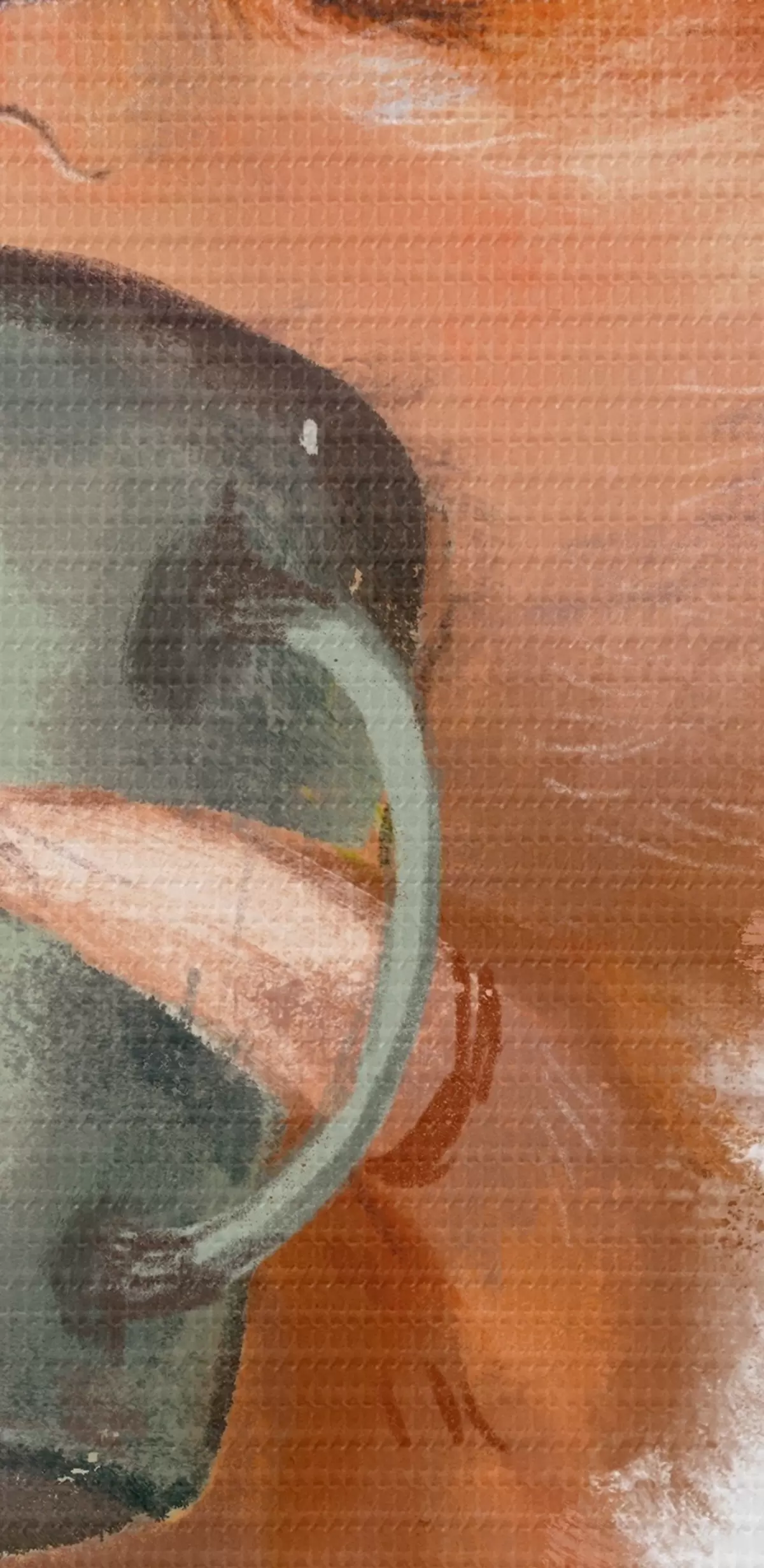 Smalkais diegu pinums uz šī audekla atgādina profesionālu mākslinieku audeklu virsmu.