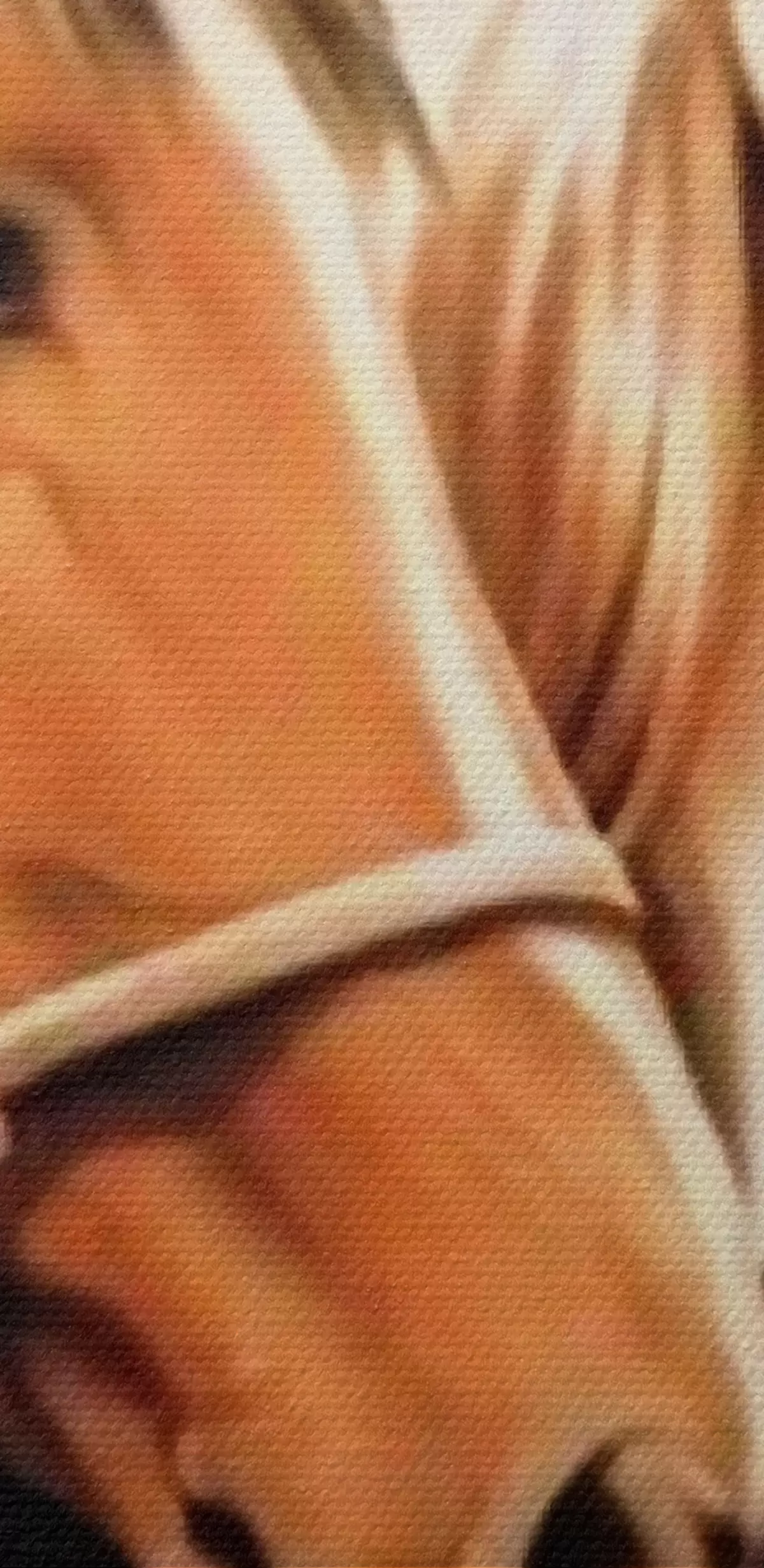 Smalkais diegu pinums uz šī audekla atgādina profesionālu mākslinieku audeklu virsmu.