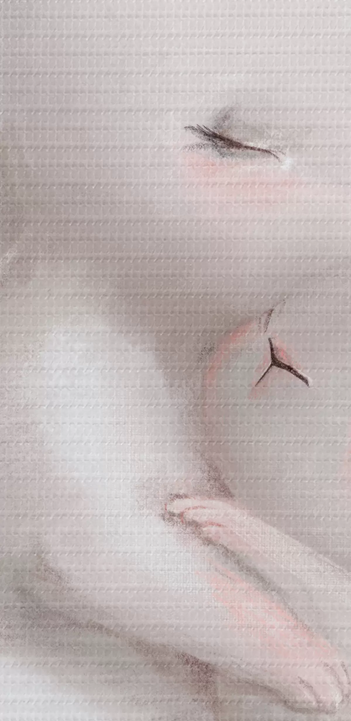 Smalkais diegu pinums uz šī audekla atgādina profesionālu mākslinieku audeklu virsmu.