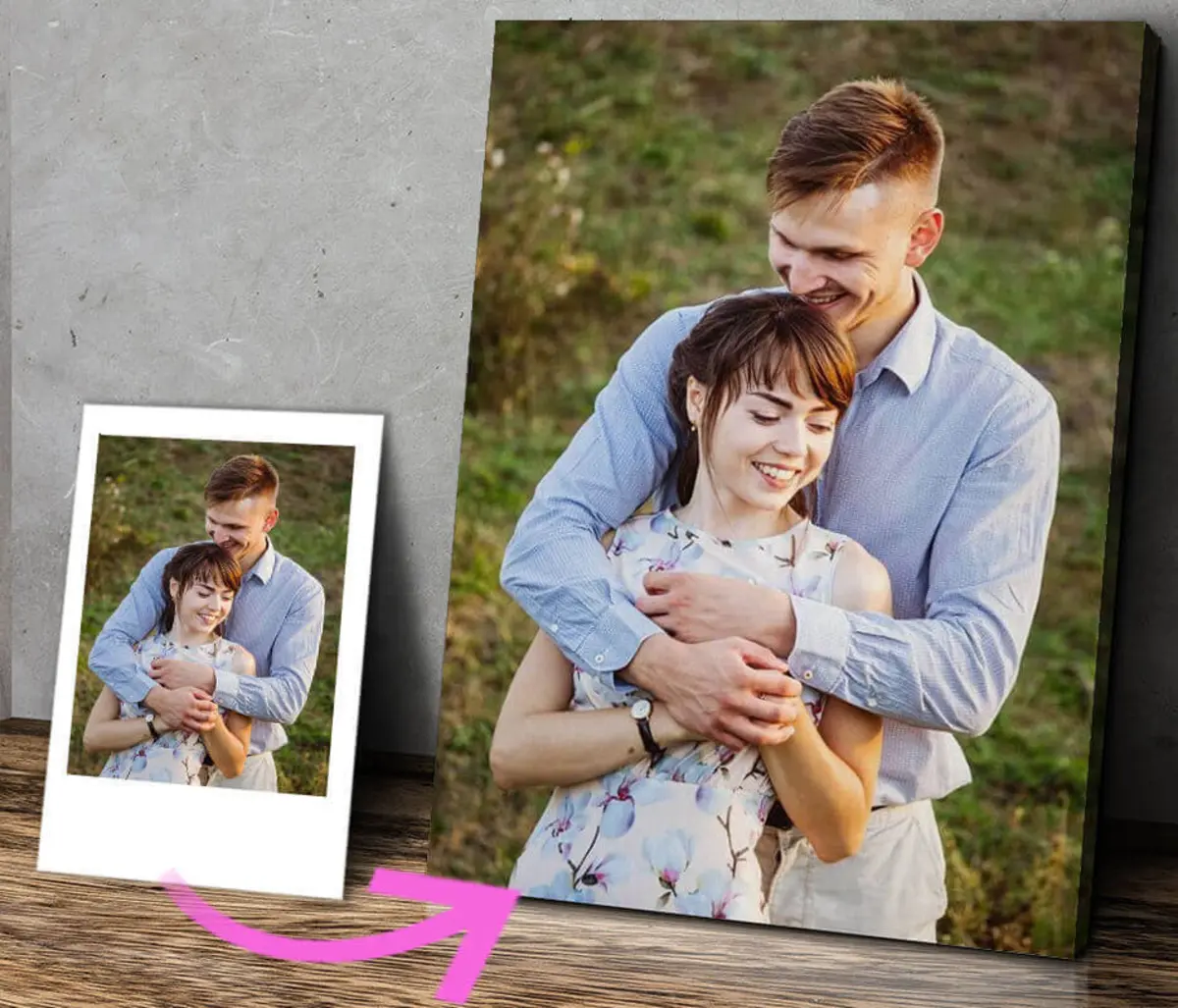 Mēs varam izdrukāt jūsu fotoattēlu uz audekla vai plakāta. Augšupielādējiet un pielāgojiet savu fotoattēlu mūsu redaktorā tikai 5 minūtēs.