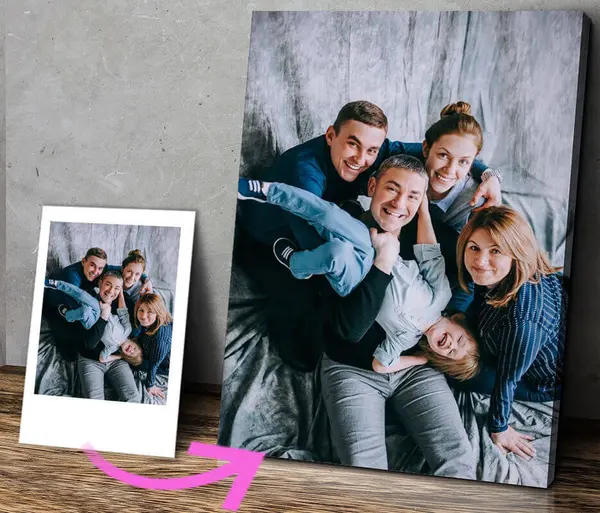 Mēs varam izdrukāt jūsu fotoattēlu uz audekla vai plakāta. Augšupielādējiet un pielāgojiet savu fotoattēlu mūsu redaktorā tikai 5 minūtēs.